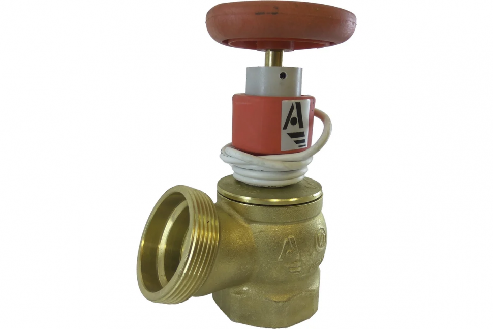 Клапан пожарный латунный КПЛ 50-1 муфта-цапка, Д 51 угловой 125° с датчиком положения — надежное решение для систем противопожарного водопровода