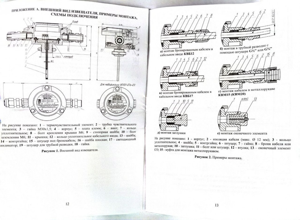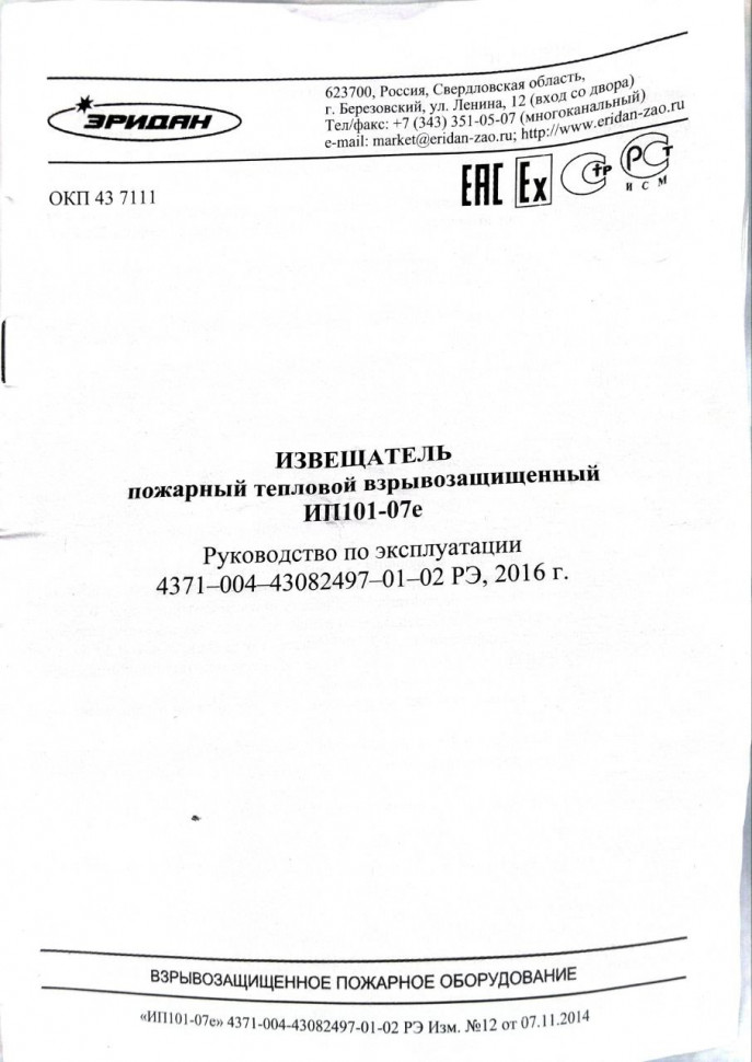 Извещатель пожарный ИП 101-07е (компл.08) тепловой максимальный взрывозащищенный, КВМ15+ЗГ, класс A3