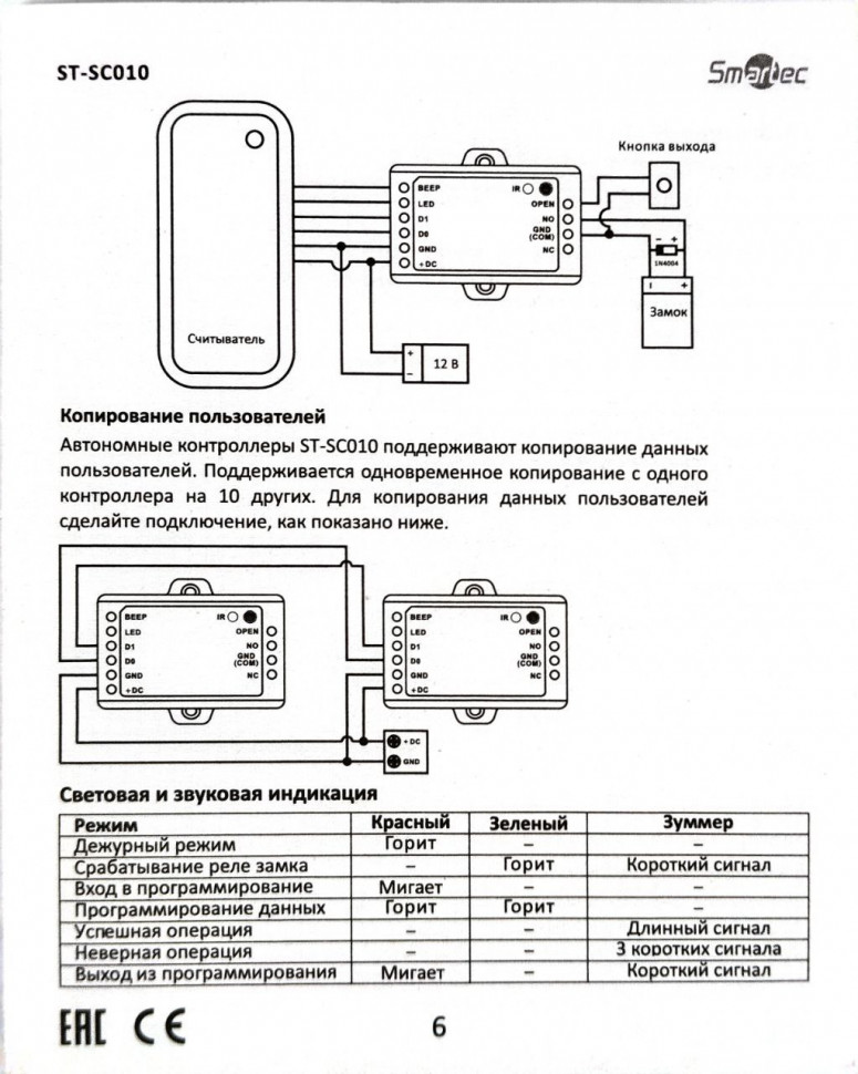 Smartec ST-SC010 - представляет собой автономный контроллер, предназначенный для организации систем ограниченного доступа. Данное устройство ориентировано на совместную работу со считывающим устройством, которое устанавливается снаружи защищаемого объекта.