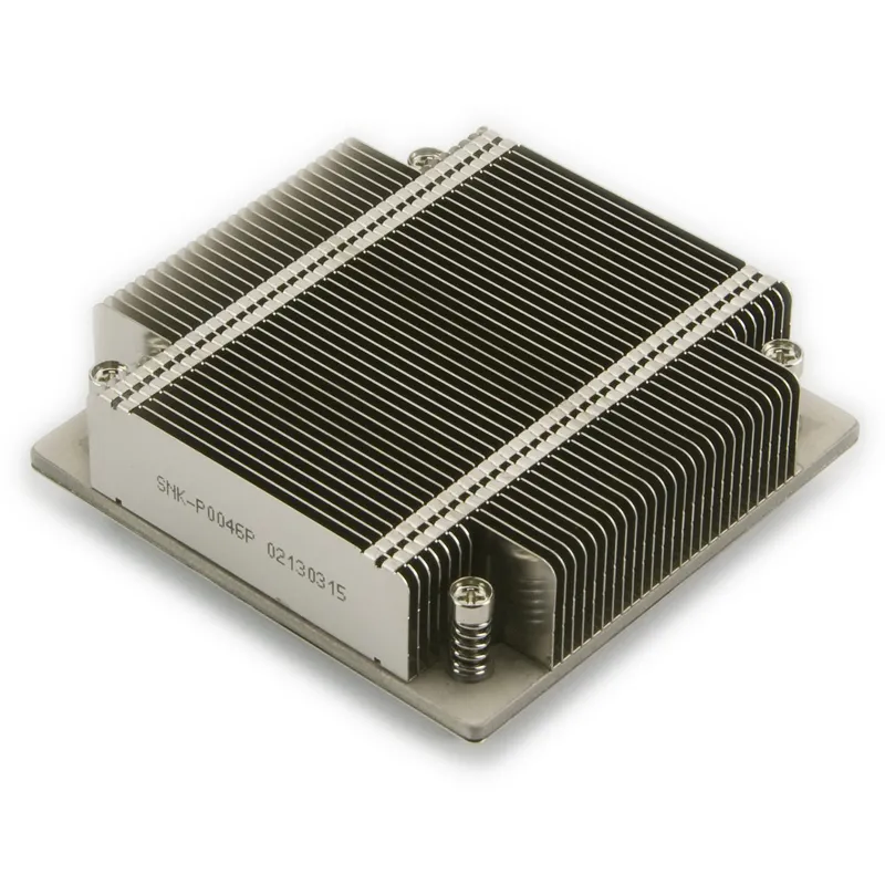 Пассивный радиатор Supermicro Heatsink 1U+ SNK-P0046P совместим с сокетами Intel LGA1150/1151/1155/1156, , рассеиваемая мощность составляет 95 Вт.