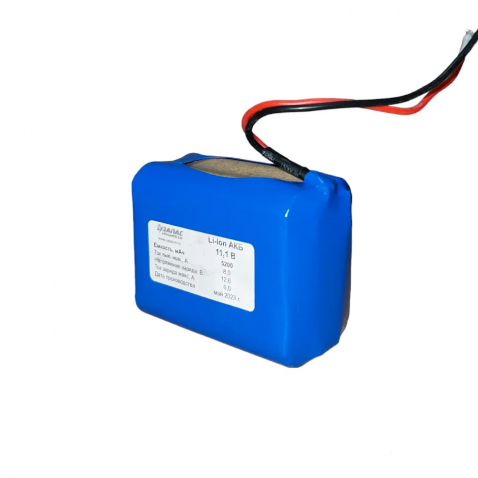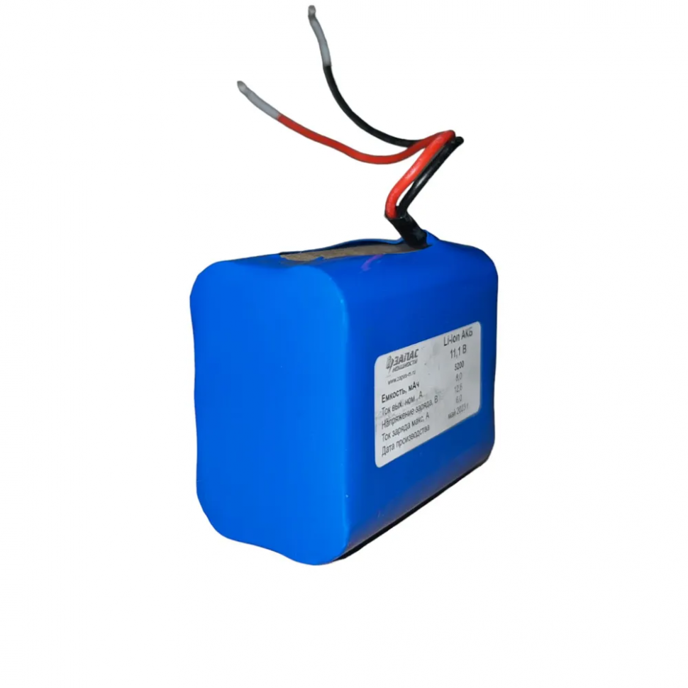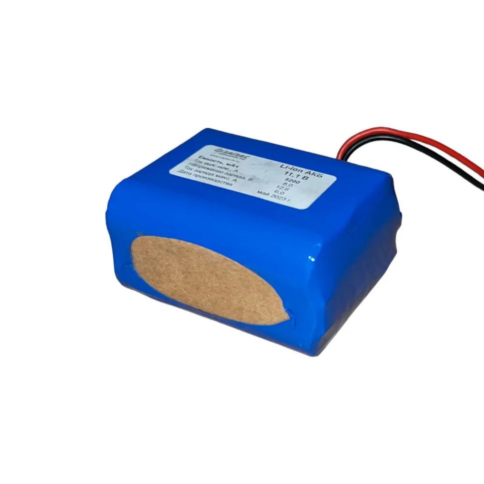 Литий-ионная перезаряжаемая аккумуляторная батарея с встроенной BMS (Battery Management System). Номинальное напряжение 11,1В.