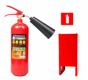 Комплект огнетушитель ОУ-2, подставка П-10 и знак (указатель) F04 - надежное и удобное решение для обеспечения безопасности. Необходимый инструмент для быстрого и эффективного тушения пожаров в небольших помещениях до 20 кв.м.