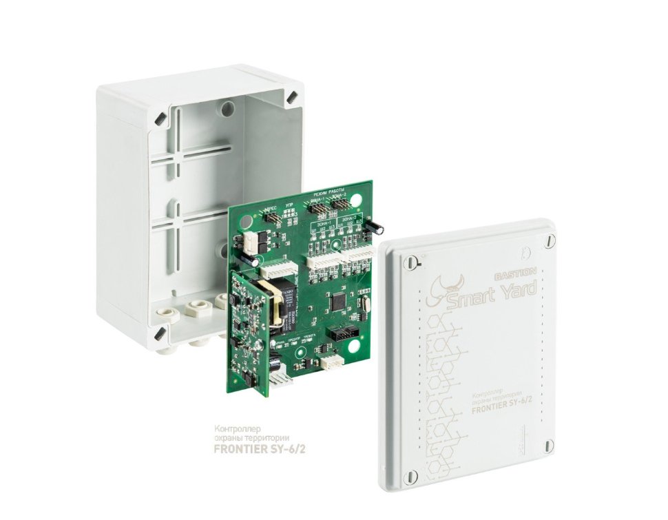 Прибор контролирует 2 независимые зоны обнаружения, в каждой из которых по 3 охранных шлейфа для подключения извещателей. Для каждой зоны индивидуально настраивается тактика реагирования исходя из 5 основных режимов чувствительности. Также для каждой зоны задается возможность работы в круглосуточном режиме, в этом случае, контроллер обеспечивает безопасность зоны, даже если система снята с охраны. В случае определения попытки проникновения контроллер формирует соответствующий сигнал типа «сухой контакт» для передачи на ППК, на информационную шину для оповещения других контроллеров системы Smart Yard, а также активирует свето-сигнальное устройство и прожектор. Существует два варианта постановки на охрану: через информационную шину по сигналу от другого контроллера либо через вход для подключения приемника радиобрелков. Особенности - 2 зоны охраны, каждая обрабатывает 3 шлейфа;