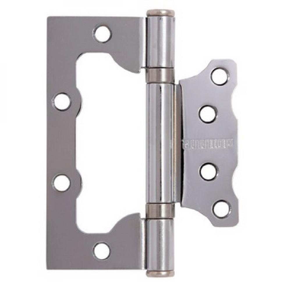 Петля дверная универсальная, без врезки. Предназначена для установки на левые и правые двери. Материал - сталь, гальваническое покрытие. Размер петли - 100х75х2,5 мм. 2 подшипника, плоский колпачок.
