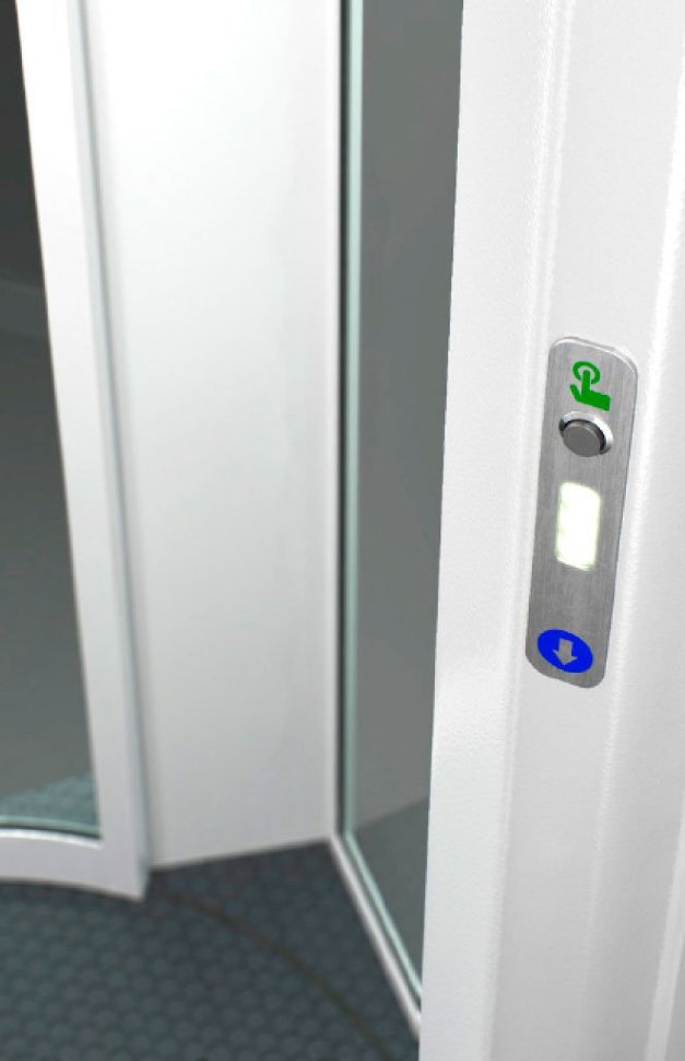Антиизоляция при нажатии кнопки «Антипаника», установленной внутри кабины, электромагнит внешней двери разблокируется, позволяя открыть внешнюю дверь вручную, звучит соответствующее сообщение;
