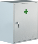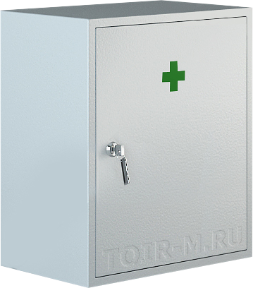 Настенная металлическая медицинская аптечка первой помощи - оборудована почтовым замком для предотвращения несанкционированного доступа к содержимому.