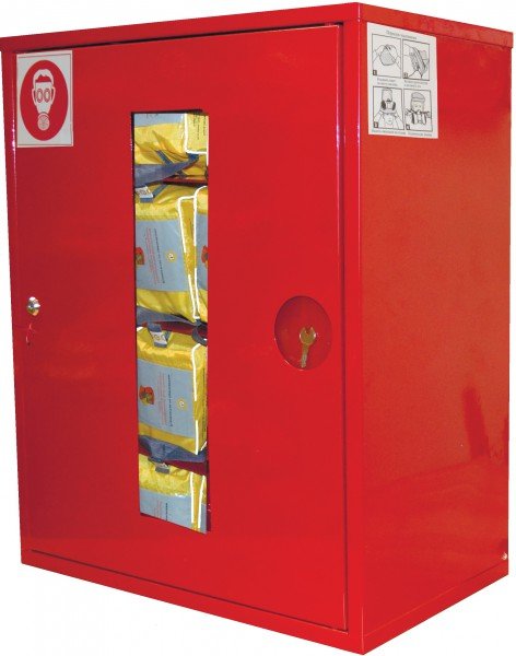 Контейнер для хранения УФМС «Шанс-32» предназначен для обеспечения удобства хранения и оперативного получения тридцати двух самоспасателей в местах постоянного нахождения людей и на путях эвакуации. В комплекте 2 ключа, пломба из пластика, которая сама затягивается, 2 наклейки «Место выдачи СИЗ» и порядок надевания самоспасателя.