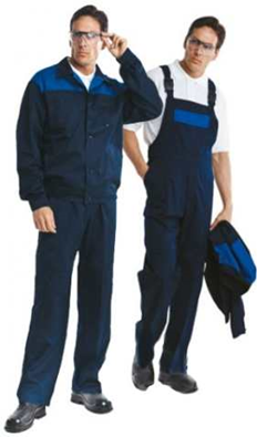 Куртка укороченная с центральной бортовой застежкой на пуговицы, с контрастной кокеткой. На передней части куртки нагрудные карманы с клапанами и боковые накладные карманы с наклонным входом. Полукомбинезон с регулируемыми бретелями, боковыми накладными карманами с наклонным входом и боковой застежкой на пуговицы. По талии спинки и задним частям бретелей эластичная тесьма.