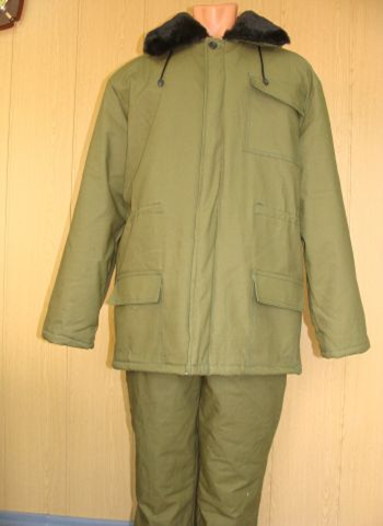Три накладных кармана с клапанами: один на груди, два по бокам. Кулиска на поясе. Рукава втачные, с трикотажными напульсниками.