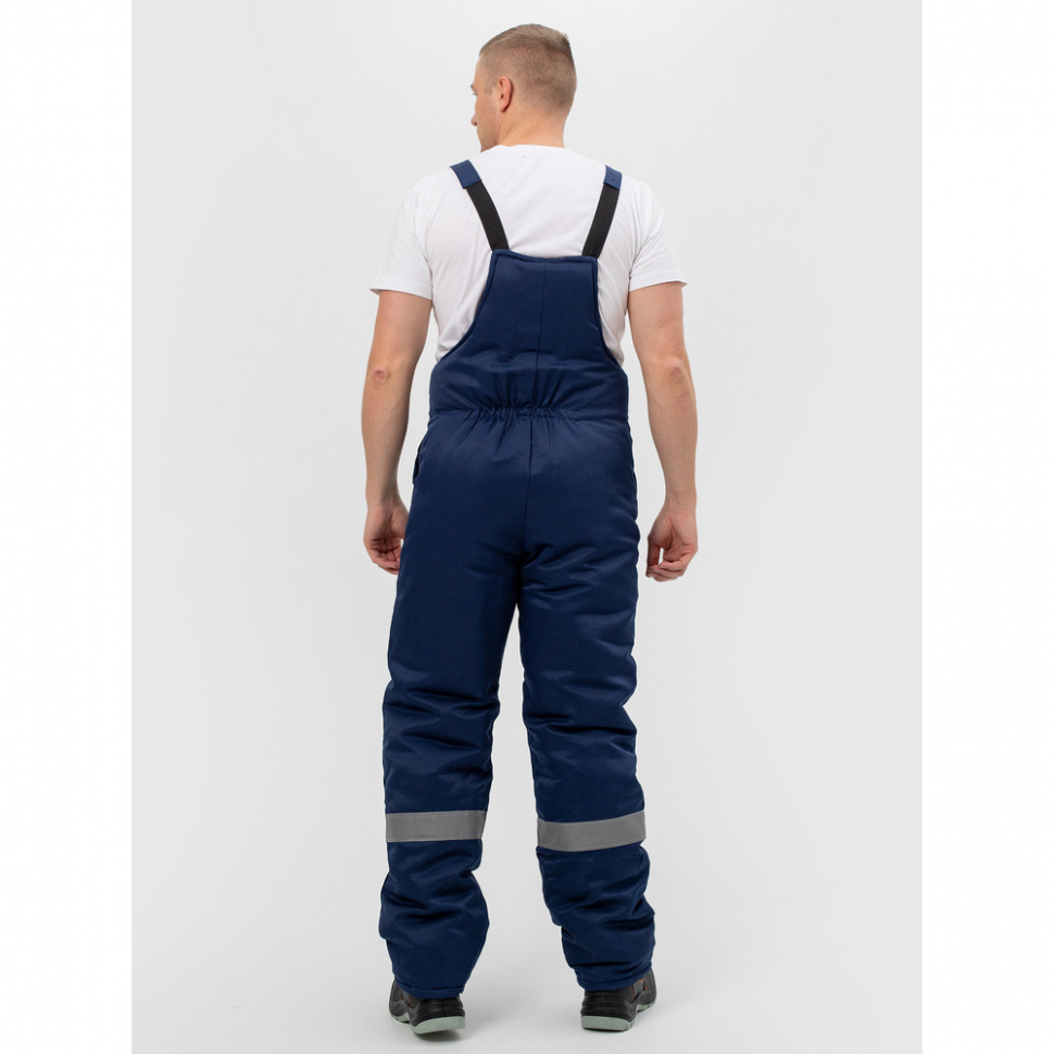Полукомбинезон центральную застежку на молнию, регулируемые бретели с надежными фастексами, усиленные наколенники и несколько функциональных карманов, включая нагрудный карман с клапаном. В области колен расположены светоотражающие полосы шириной 5 см, обеспечивающие безопасность в условиях плохой видимости.