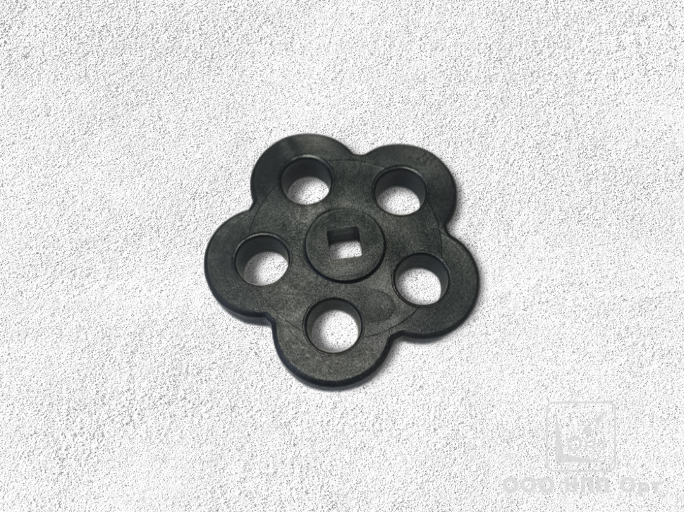 Внешний диаметр маховика — 91 мм.Выполнен в классическом стиле — в форме пятиконечной звезды со скругленными концами, в середине имеет конусное квадратное отверстие 9×9мм.