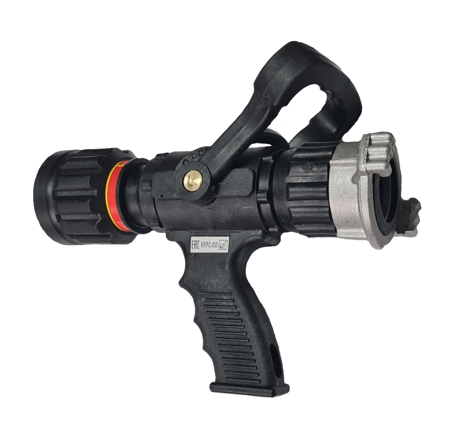 Ствол пожарный ручной перекрывной комбинированный универсальный с регулируемым расходом КУРС-50 ТУ 28.99.39-017-34030573-2023 предназначен для формирования и направления сплошных или распыленных струй воды, пены низкой кратности, пены средней кратности, а также для перекрытия потока огнетушащего вещества.