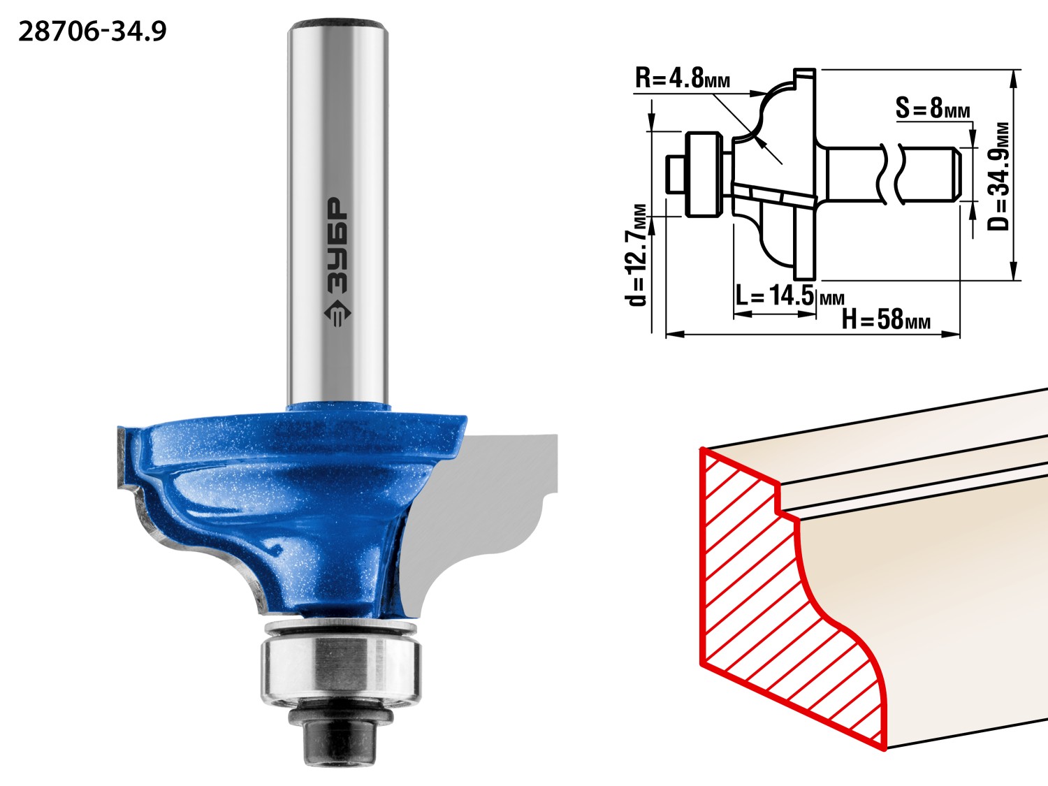 Фреза отлично подходит для скругления кромок при обработке столешниц, полок, шкафов и прочих работ с разнообразными видами древесины