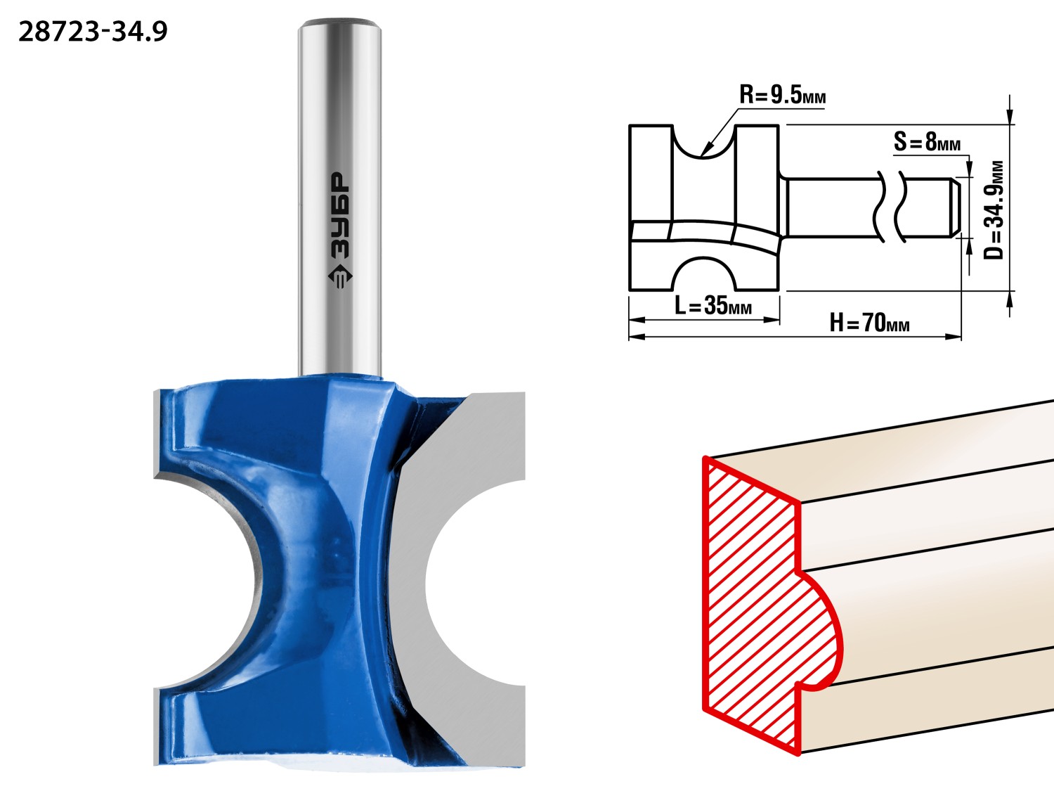 Фреза отлично подходит для обработки кромок, торцев, получения декоративного профиля при работе с различными видами древесины.