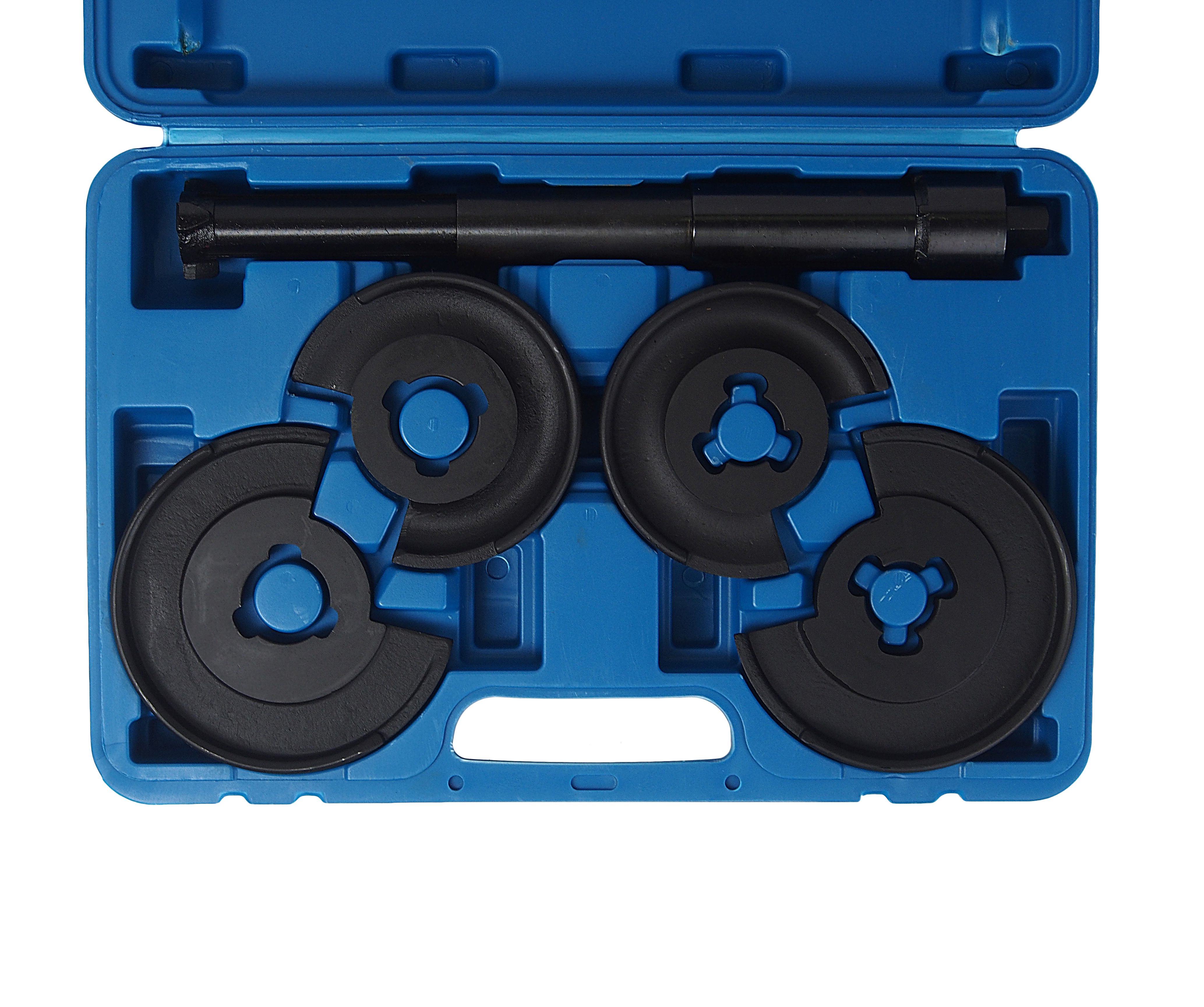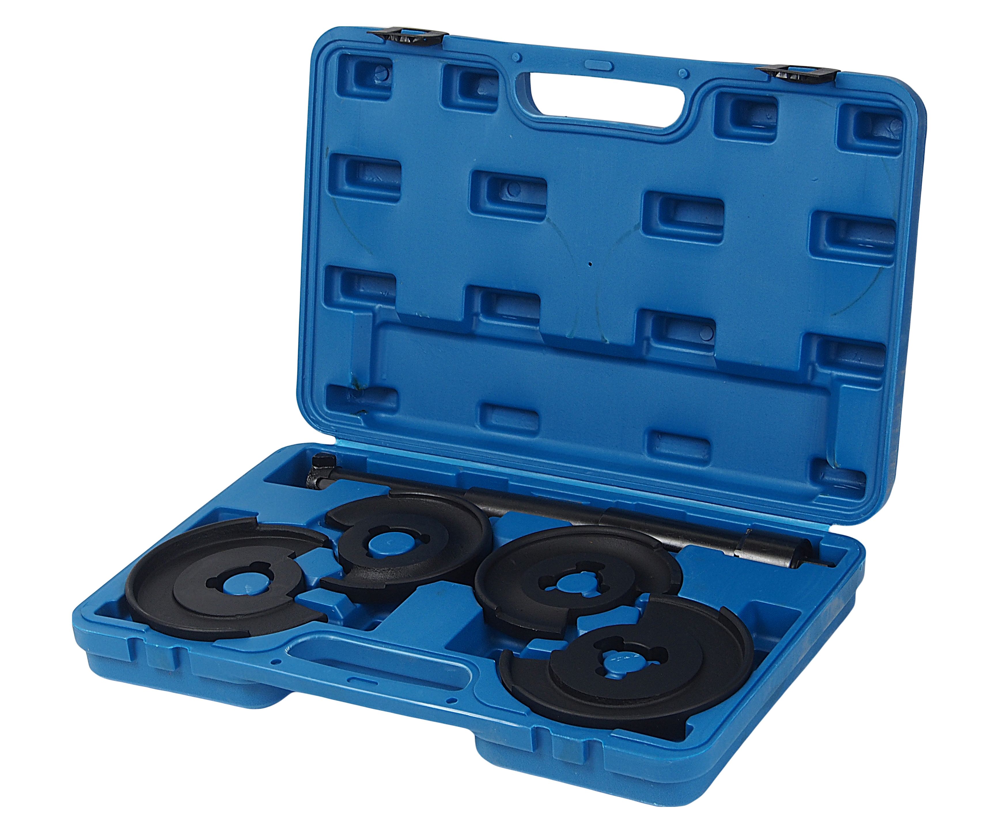 Стяжка пружин RockForce 6 предметов в наборе, в кейсе съемно-демонтажный инструмент для ремонта и обслуживания транспортных средств. Применяется как профессионалами в специализированных сервисах, так и автолюбителями. В конструкции стяжек предусмотрены раздвоенные концы — это обеспечивает надежный и аккуратный захват пружины. Съемники изготовлены из прочной хром-ванадиевой стали, прошедшей предварительную закалку.