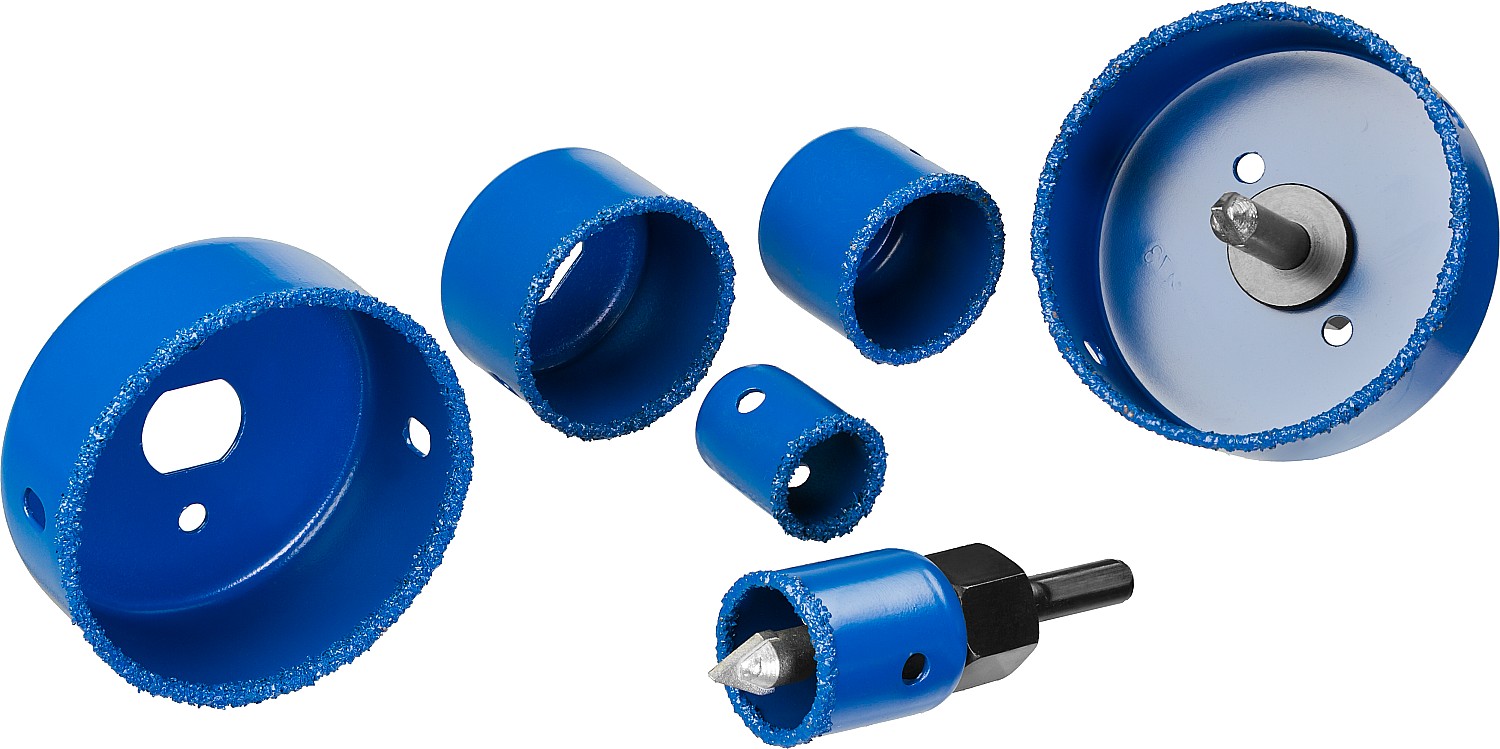 Коронки-чашки с нанесением карбида вольфрама изготовлены из высокопрочной стали, имееют более широкий размерный ряд чем кольцевые коронки и позволяют сверлить средние и большие отверстия, с глубиной сверления до 25 мм.