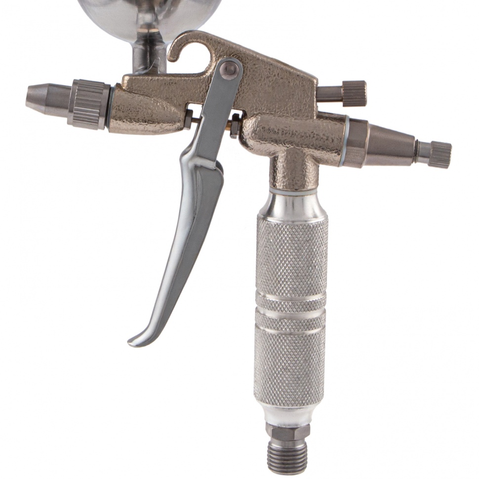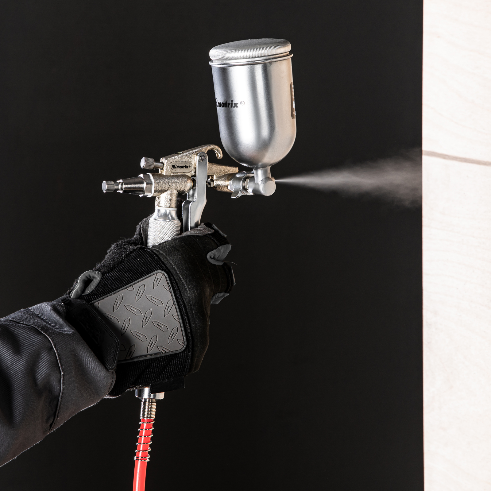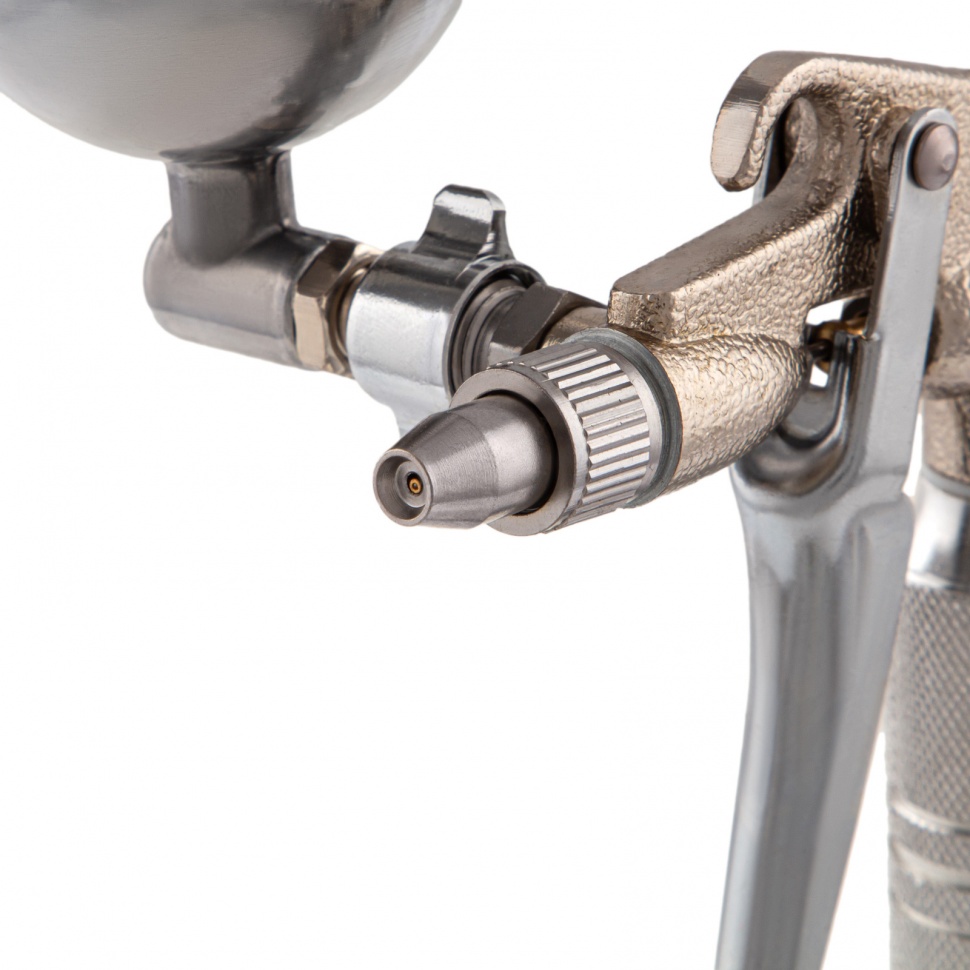 Пневматический краскораспылитель Matrix 57318 с верхним бачком объемом 0,1 л и соплом диаметром 0,5 мм позволяет равномерно распределить грунтовку или краску по поверхности и применяется для финишных работ. Краскопульт можно использовать с масляными и латексными красками. За счет низкого расхода воздуха 35 л/мин его можно подключать даже к небольшим компрессорам.Преимущества Качественное окрашивание — технология распыления MP (среднее давление) повышает коэффициент переноса краски на поверхность. Верхнее расположение бачка — краска расходуется полностью, и ее легко заправлять. Универсальность — бак изготовлен из алюминия, что позволяет использовать краски на основе растворителей. Надежность и долговечность — алюминиевый пистолет устойчив к механическим повреждениям. Комфортная эксплуатация — краскораспылитель оснащен регуляторами расхода краски и формы распыления. Малый вес 0,32 кг — даже продолжительная работа краскораспылителем не вызывает дискомфорт.
