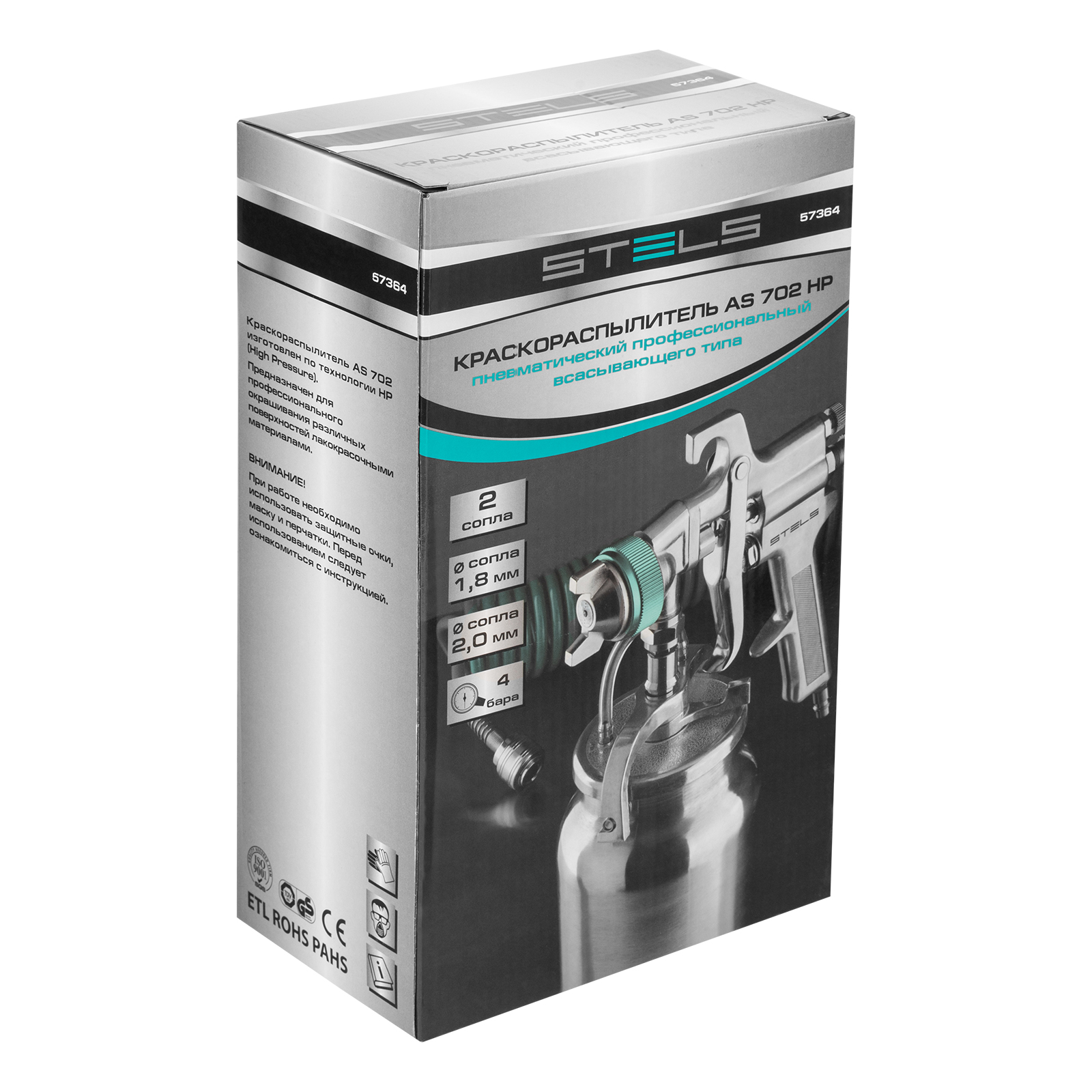 Краскораспылитель профессиональный всасывающего типа Stels AS 702 HP 57364 предназначен для окрашивания мебели, заборов, крыш, кузовов автомобилей, стен и других поверхностей, а также для побелки потолков, покрытия деревьев морилкой и т.д. Система распыления High Pressure (Высокое давление) обеспечивает формирование широкого факела для ускорения рабочего процесса, равномерное покрытие поверхности лакокрасочным материалом и быстрое выполнение даже сложных задач. Работая под высоким давлением, краскораспылитель экономно расходует лакокрасочный материал — всего 283 л/час.ПреимуществаУдобная работа — алюминиевый бачок объемом 1 л не закрывает обзор благодаря нижнему расположению.Защита от коррозии — на инструмент нанесено покрытие из полированного хрома.Простая настройка — поворотный регулятор позволяет менять размер факела, подстраиваясь под площадь окрашиваемой поверхности.Универсальность — система регулировки давления воздуха, подачи материала, направления и формы факела помогает подстраиваться под разные задачи и решать их одним инструментом.Легкая подготовка к работе — соединение Рапид (Евро) делает стыковку с компрессором быстрой и простой.Широкая комплектация — к краскораспылителю прилагается дополнительный дюзовый комплект (сопло, воздушная форсунка и игла), универсальный ключ и удобный ершик для быстрой очистки.