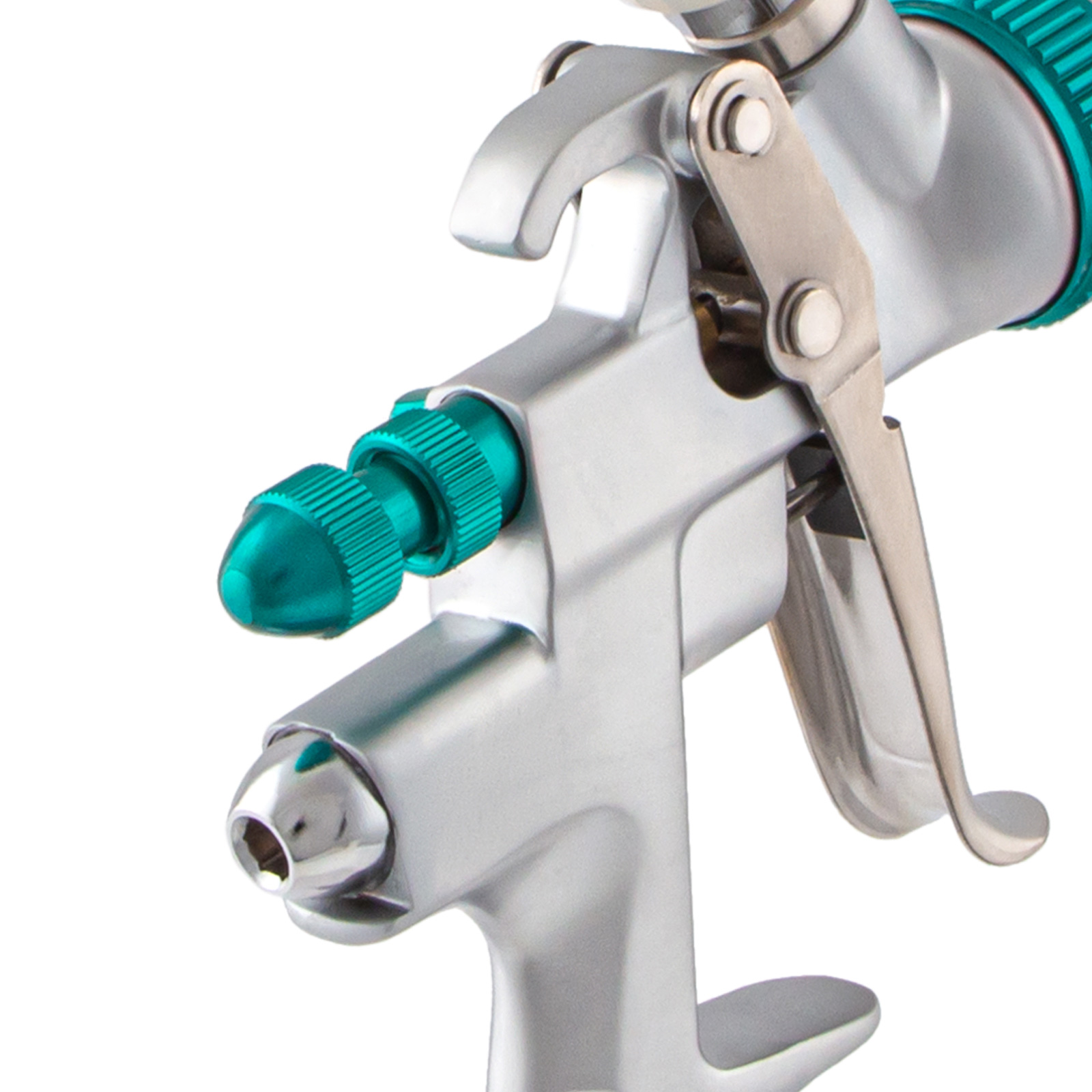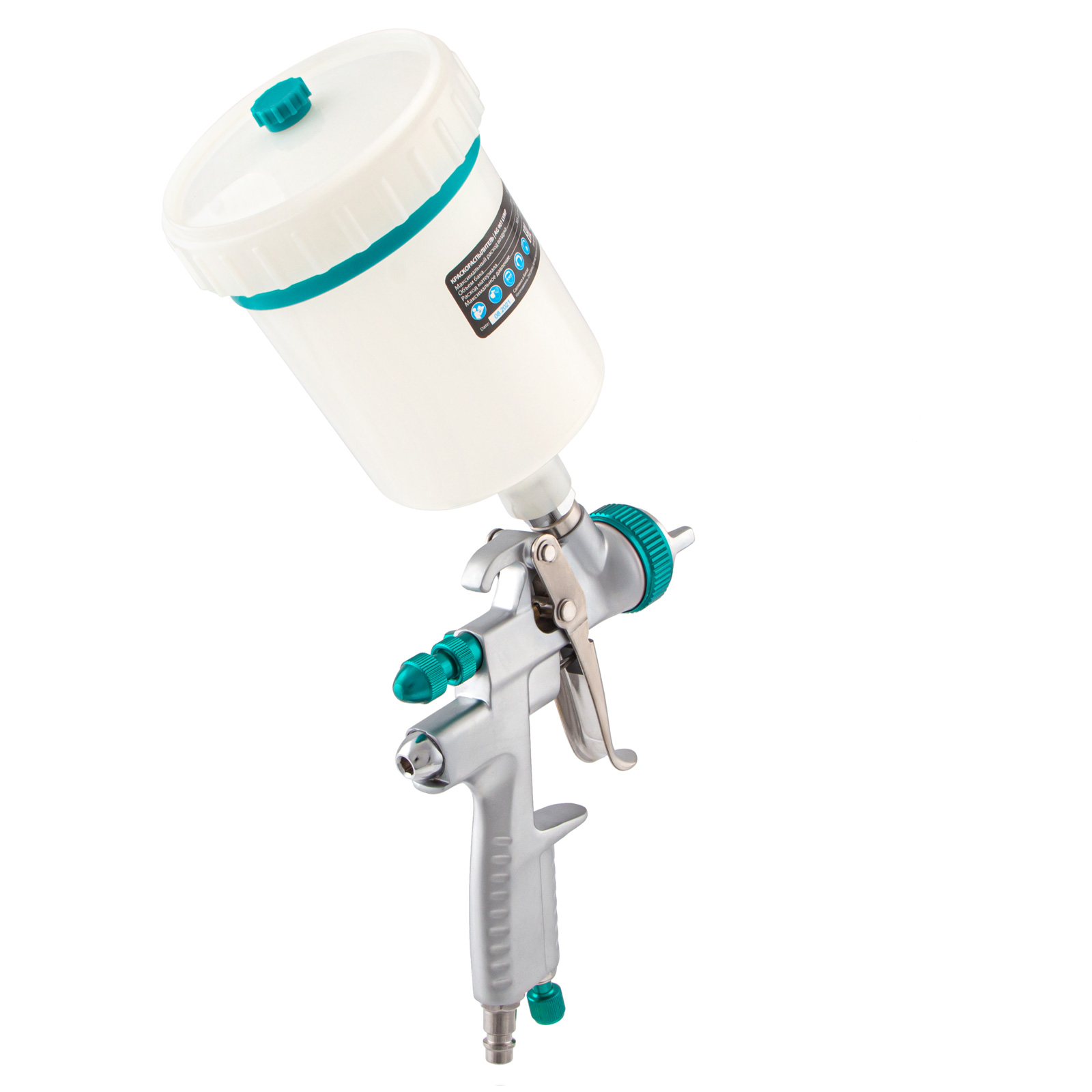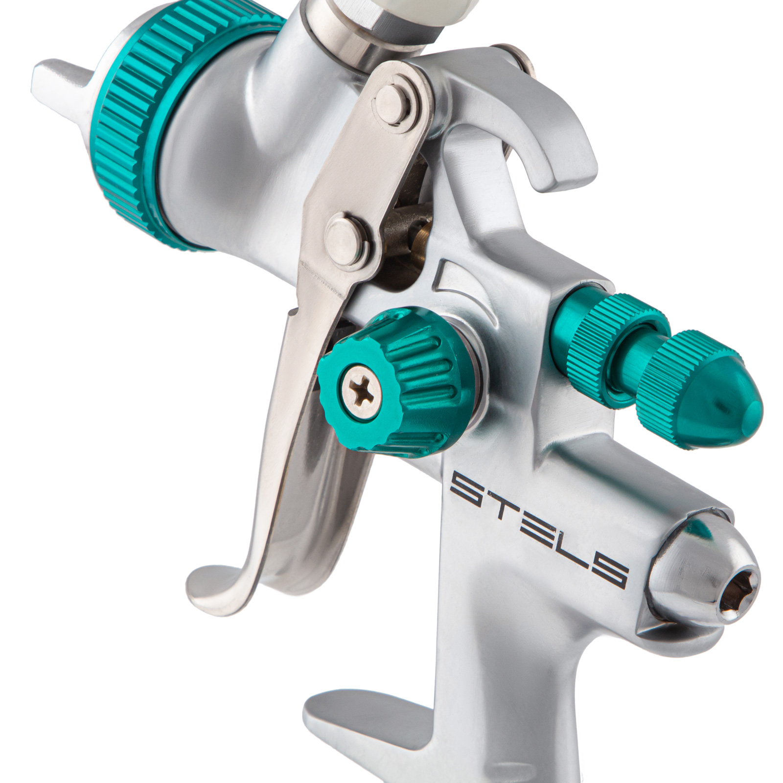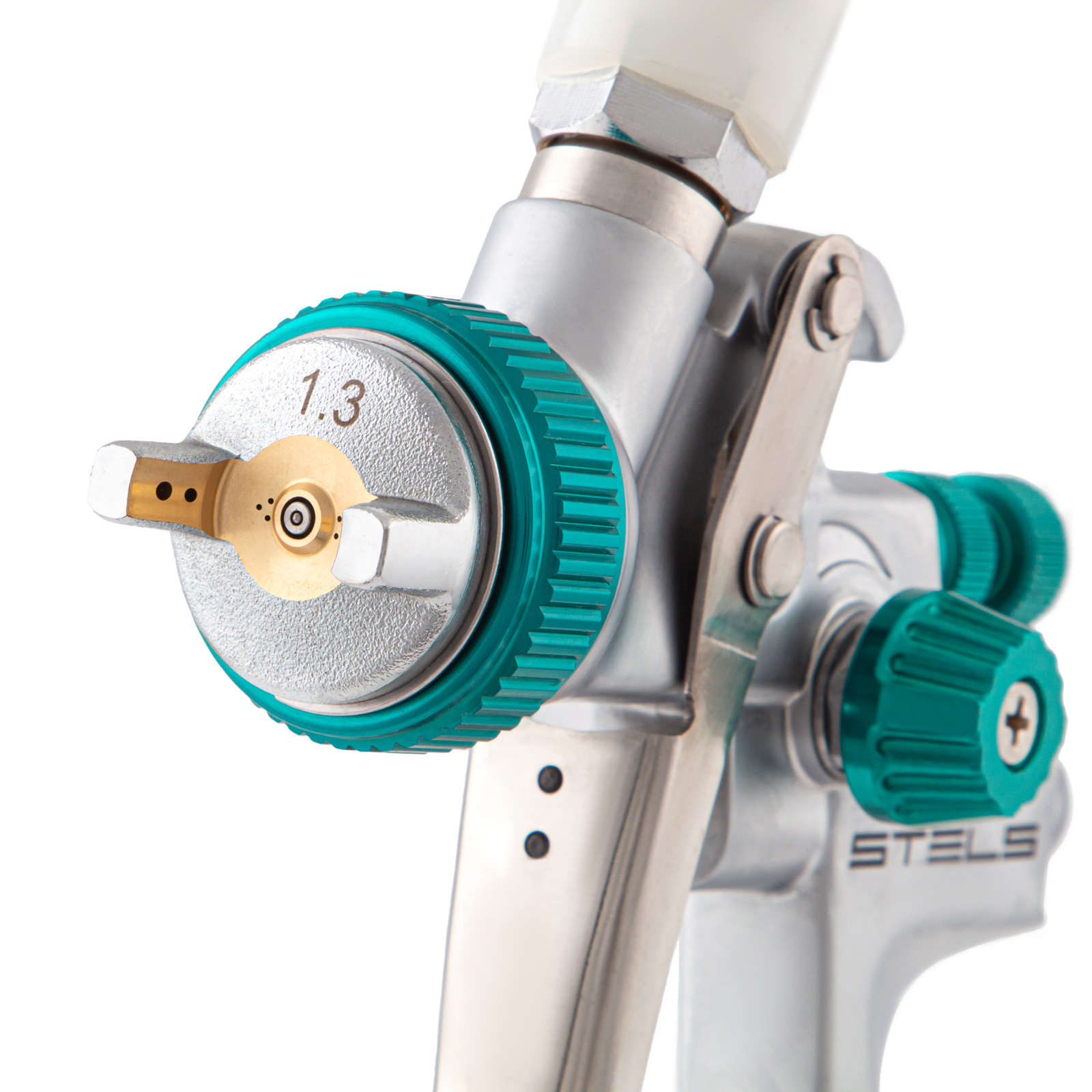 Краскораспылитель гравитационного типа Stels AG 901 LVMP 57365 с соплами диаметром 1,3 и 1,1 мм предназначен для профессионального окрашивания, нанесения эмали и лака на поверхности, грунтовки стен, побелки потолков, опрыскивания растений и т.д. Формирует мягкий широкий факел под давлением 2,5 бар и распыляет материалы равномерно, без образования подтеков.ПреимуществаВысокая производительность — технология LVMP (низкий объем, среднее давление) обеспечивает до 70% переноса окрасочного материала на рабочую зону.Мобильность — краскопульт оснащен пластиковым бачком для лакокрасочных материалов объемом 0,6 л, поэтому подключение к большой емкости не требуется.Экономичность — краскораспылитель расходует всего 165-220 мл/мин раствора благодаря усовершенствованной конструкции диффузной камеры.Высокое качество работы — при распылении лака или краски на обрабатываемой поверхности образуется тонкий слой без подтеков, что позволяет проводить многослойное окрашивание.Защитное покрытие — корпус хромирован для предотвращения образования коррозии и повышения механической прочности.Простое подключение — быстросъемный коннектор рапид облегчает соединение краскораспылителя с компрессором.Широкие возможности — система регулировки давления воздуха, подачи материала и формы факела помогает решать разные задачи при помощи одного инструмента.Необходимые аксессуары в комплекте — краскопульт поставляется с дюзовым набором диаметром 1,3 мм, ершиком для очистки и универсальным ключом.