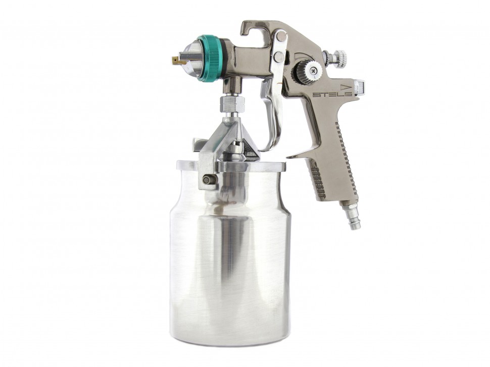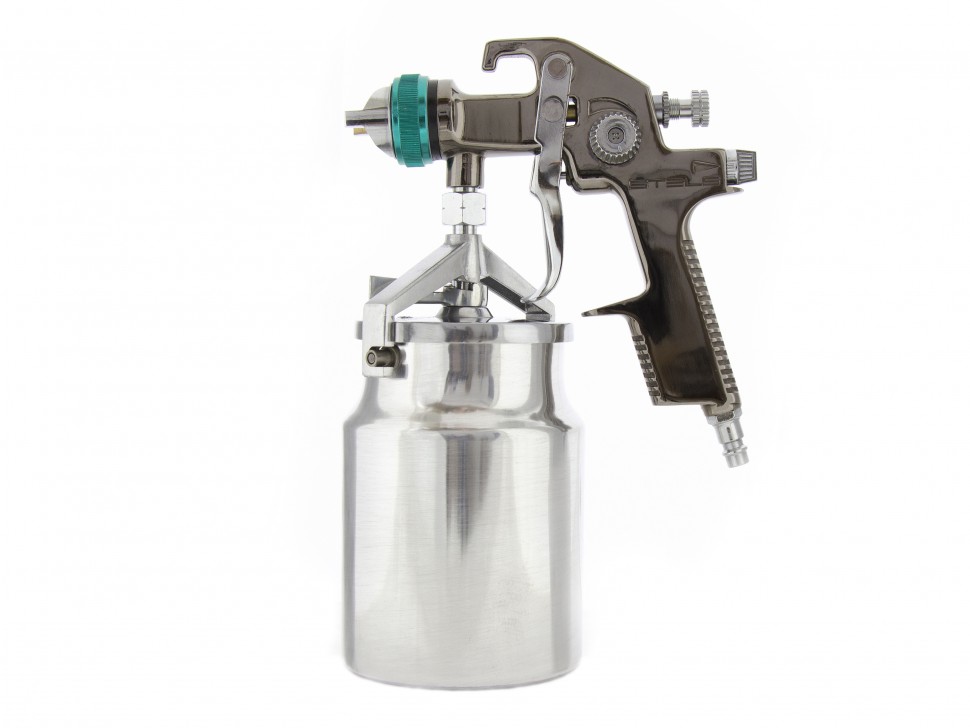 Профессиональный краскораспылитель Stels AS 802 HVLP подходит для окрашивания любых поверхностей, покрытия лаком дерева, распыления жидких составов на потолок и стены, а также может использоваться в сельском хозяйстве и даже на пищевых предприятиях для декорирования тортов и другой продукции.Краскопульт оснащен соплом 1,4 мм и работает по технологии «Высокий объем, низкое давление». Благодаря этому создается четкий факел, допускается покраска с короткого расстояния, а процент переноса материала на рабочую зону увеличивается до 60-65 %, что на 30-35 % больше, чем у краскопультов с высоким давлением.Преимущества:Алюминиевая емкость для краски объемом 1 л крепится снизу, что обеспечивает хороший обзор рабочей зоны.Металлический корпус с хромированным покрытием защищает краскопульт от повреждений и увеличивает срок его службы.Расход материала всего 100-150 мл/мин — полного бачка хватит на обработку больших поверхностей.Эргономичная рукоятка с рельефным покрытием обеспечивает удобный захват и позволяет работать в труднодоступных местах.Не нужно докупать аксессуары — в комплект поставки включен ершик и универсальный гаечный ключ.Для соединения с источником сжатого воздуха используется коннектор Рапид (Euro). А это значит, что подключение к компрессору не займет много времени и будет под силу даже неопытному мастеру.Система регулировки давления воздуха и подачи материала помогает подстраиваться под разные задачи и решать их одним инструментом.