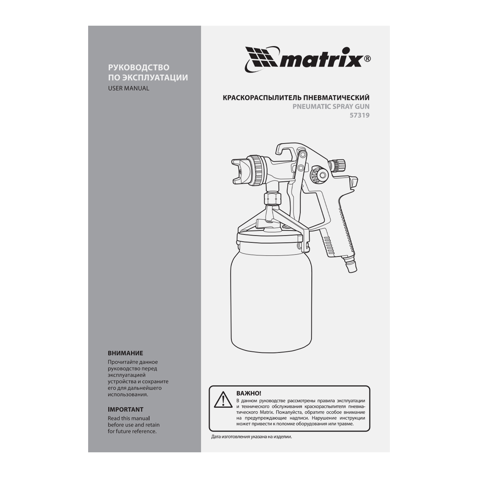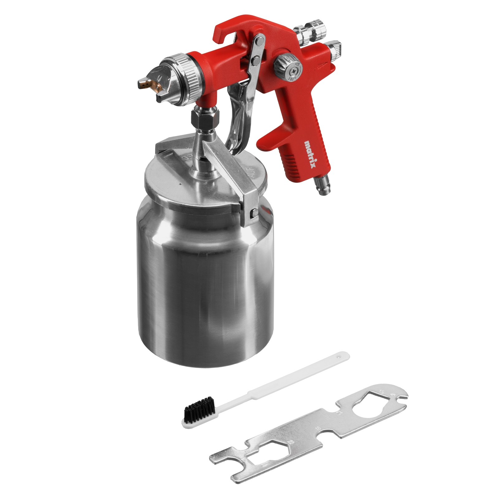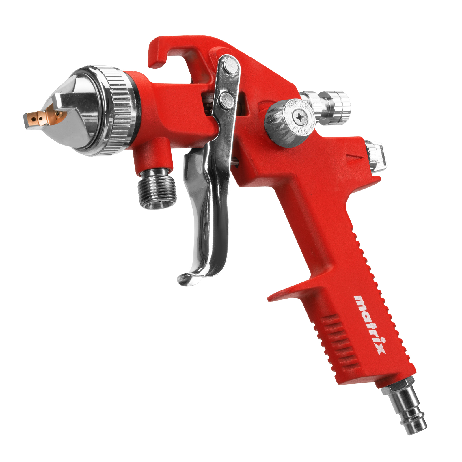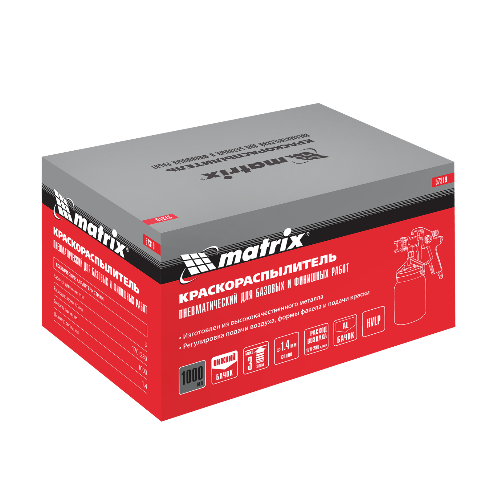 Пневматический краскораспылитель с нижним бачком Matrix 57319 объемом 1 л, с соплом диаметром 1,4 мм, расходует 170-280 л воздуха в минуту и предназначен для выполнения окрасочных работ. Позволяет работать с лакокрасочными материалами разных типов и консистенции. Благодаря технологии HVLP (High Volume Low Pressure, высокий объем, низкое давление) на поверхность переносится до 65% ЛКМ, что обеспечивает высокую производительность и сокращает потери краски. Краскораспылитель пригодится в мастерской, в гараже и в автосервисе.Преимущества Решение широкого спектра задач — предусмотрена возможность регулировки давления воздуха, подачи краски, направления и формы факела в зависимости от потребностей пользователя. Прочность и долговечность — корпус пистолета и бачок из алюминиевого сплава устойчивы к механическим повреждениям и коррозии. Обработка участков большой площади — вместительный бачок обеспечивает длительную работу без дозаправки. Комфортное использование — нижнее расположение бачка и небольшой вес пистолета позволяют уменьшить нагрузку на руки.