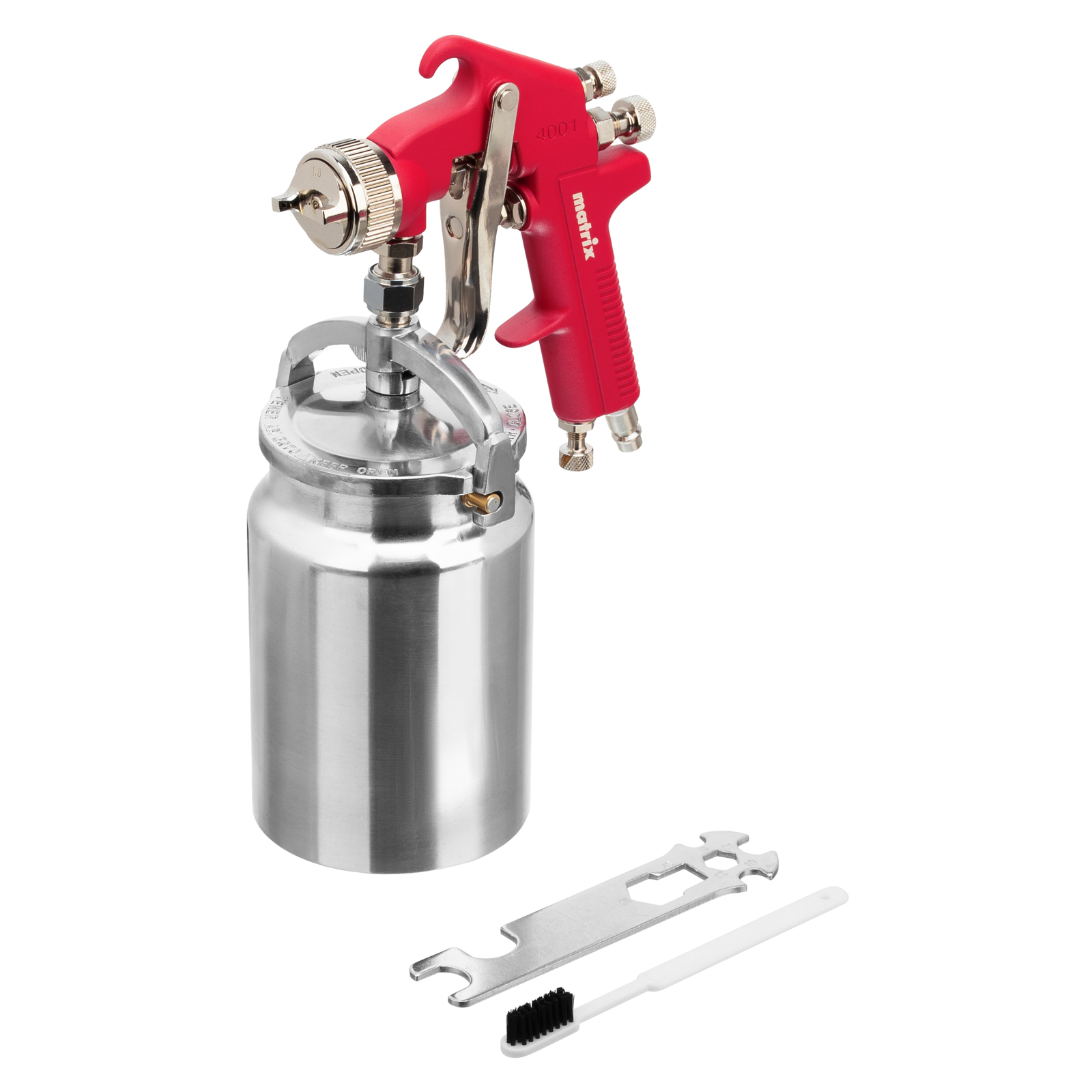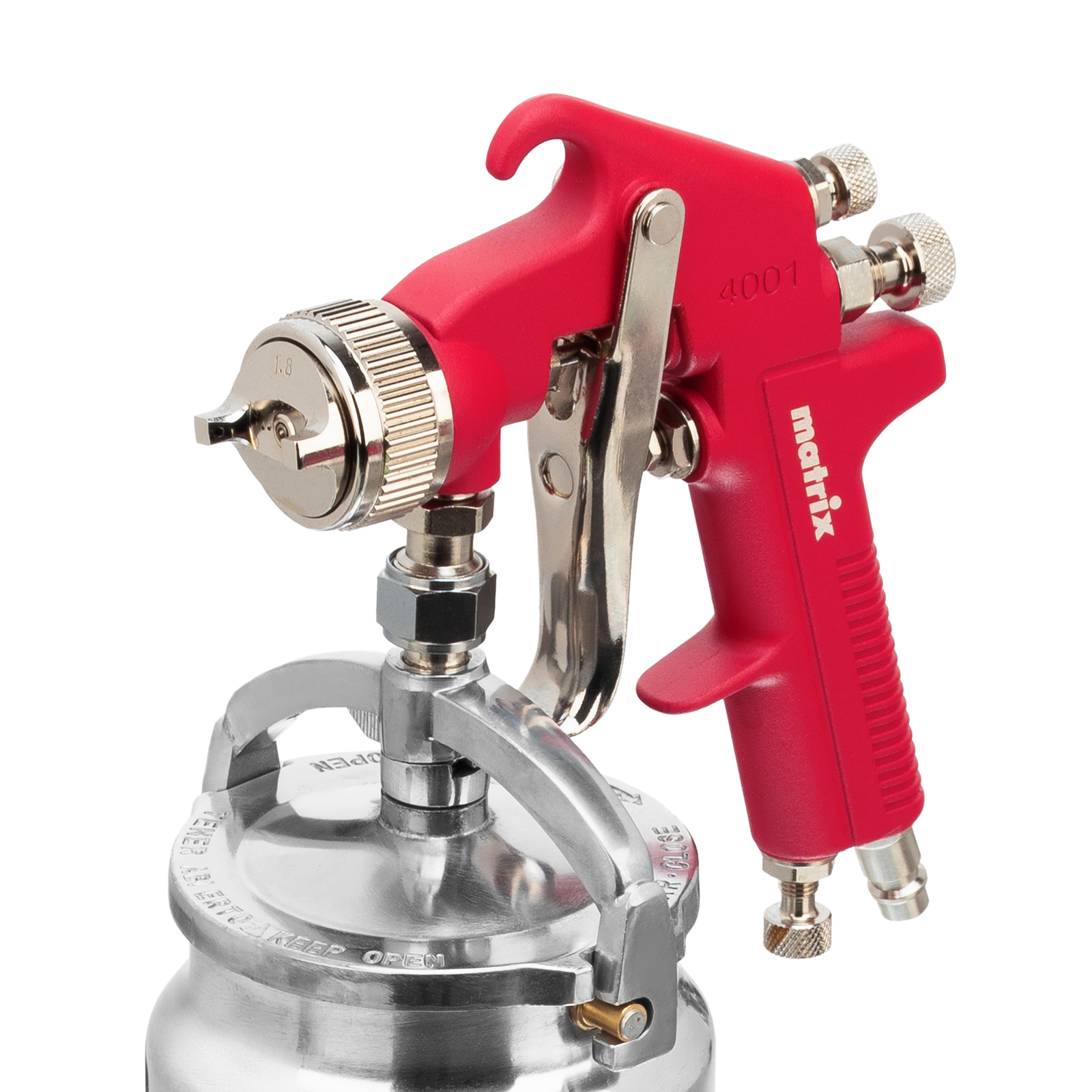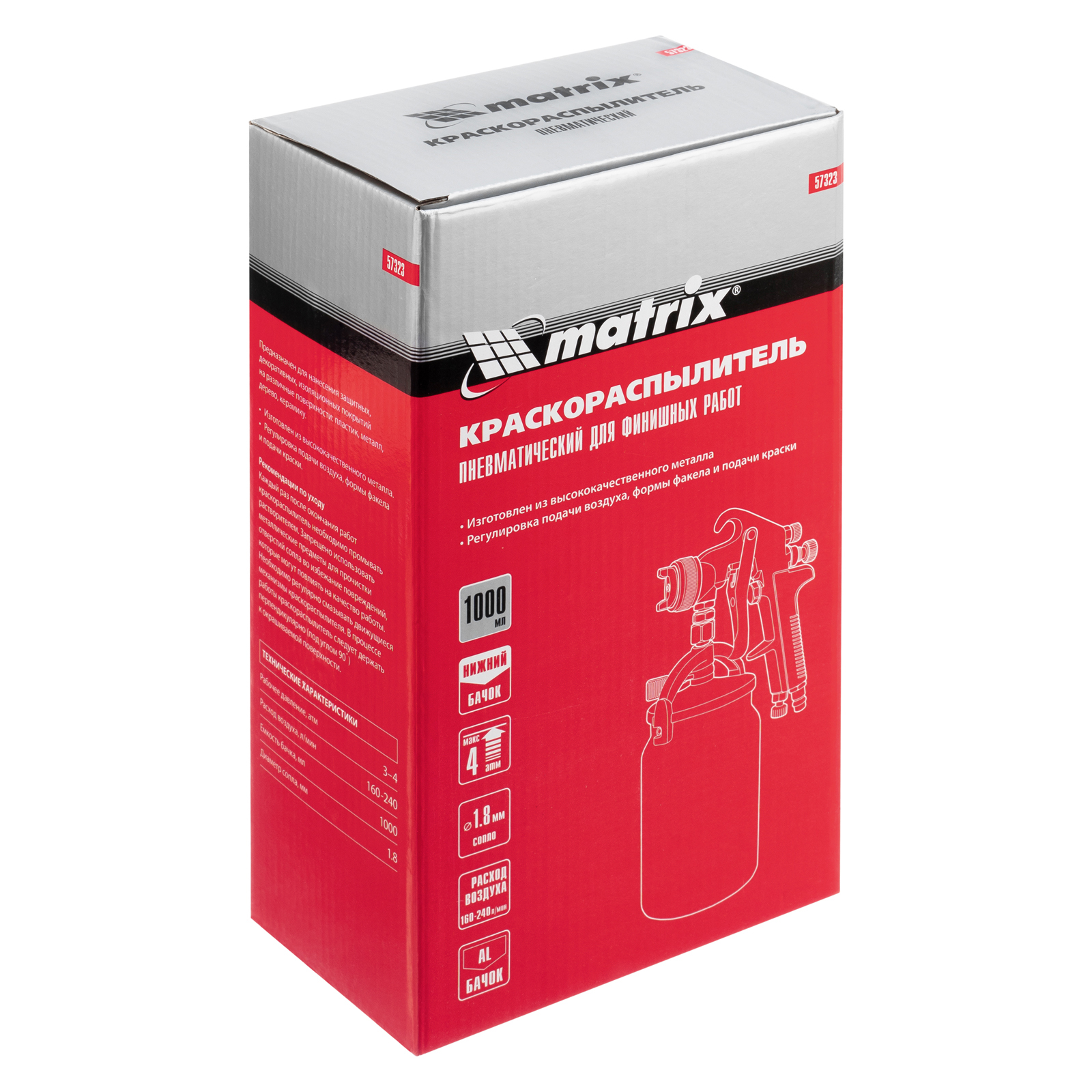 Пневматический краскораспылитель HP MTX 57323 с нижним бачком объемом 1 л, с соплом диаметром 1,8 мм, расходует 160-240 л воздуха в минуту и предназначен для выполнения окрасочных работ. Позволяет работать с лакокрасочными материалами разных типов и консистенции. Благодаря технологии HP (High Pressure, высокое давление) отличается высокой производительностью и удобен для обработки больших поверхностей. Краскораспылитель пригодится в мастерской, в гараже и в автосервисе.Преимущества Решение широкого спектра задач — предусмотрена возможность регулировки давления воздуха, подачи краски, направления и формы факела в зависимости от потребностей пользователя. Прочность и долговечность — корпус пистолета и бачок из алюминиевого сплава устойчивы к механическим повреждениям и коррозии. Обработка участков большой площади — вместительный бачок обеспечивает длительную работу без дозаправки. Комфортное использование — нижнее расположение бачка и небольшой вес пистолета позволяют снизить нагрузку на руки.