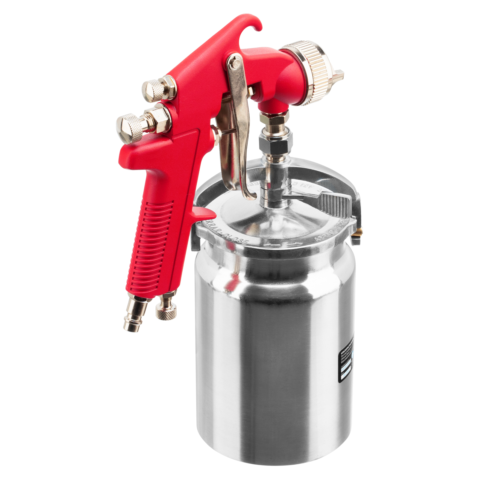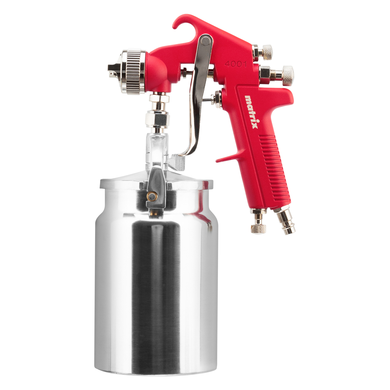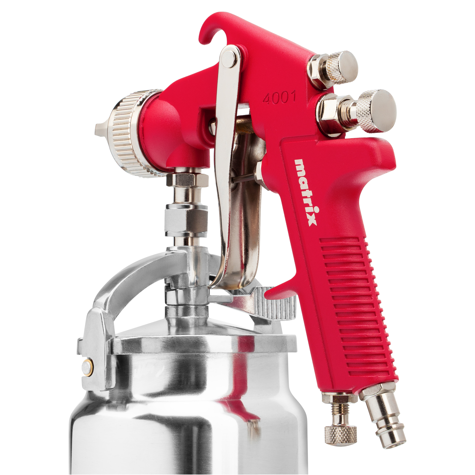 Пневматический краскораспылитель HP MTX 57323 с нижним бачком объемом 1 л, с соплом диаметром 1,8 мм, расходует 160-240 л воздуха в минуту и предназначен для выполнения окрасочных работ. Позволяет работать с лакокрасочными материалами разных типов и консистенции. Благодаря технологии HP (High Pressure, высокое давление) отличается высокой производительностью и удобен для обработки больших поверхностей. Краскораспылитель пригодится в мастерской, в гараже и в автосервисе.Преимущества Решение широкого спектра задач — предусмотрена возможность регулировки давления воздуха, подачи краски, направления и формы факела в зависимости от потребностей пользователя. Прочность и долговечность — корпус пистолета и бачок из алюминиевого сплава устойчивы к механическим повреждениям и коррозии. Обработка участков большой площади — вместительный бачок обеспечивает длительную работу без дозаправки. Комфортное использование — нижнее расположение бачка и небольшой вес пистолета позволяют снизить нагрузку на руки.