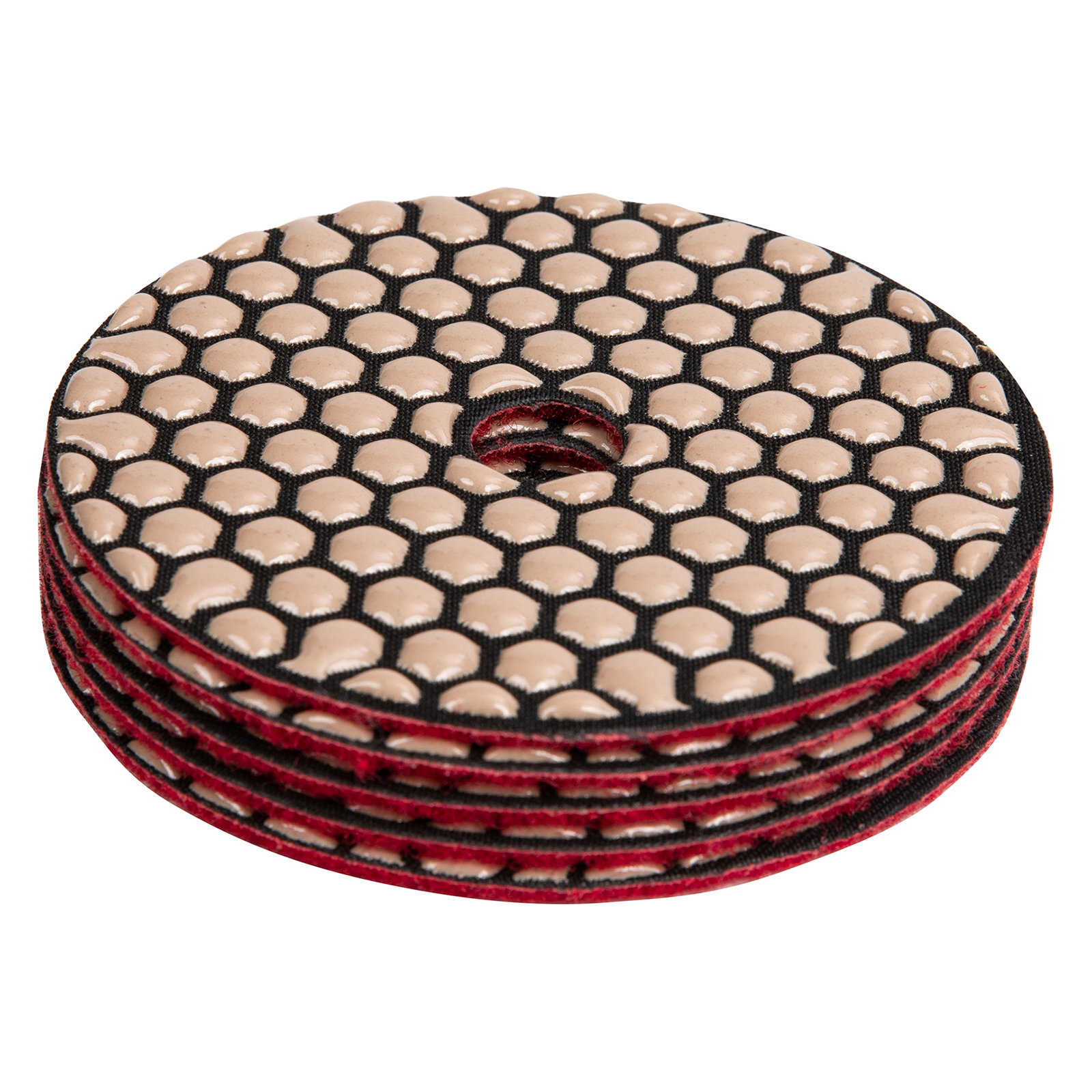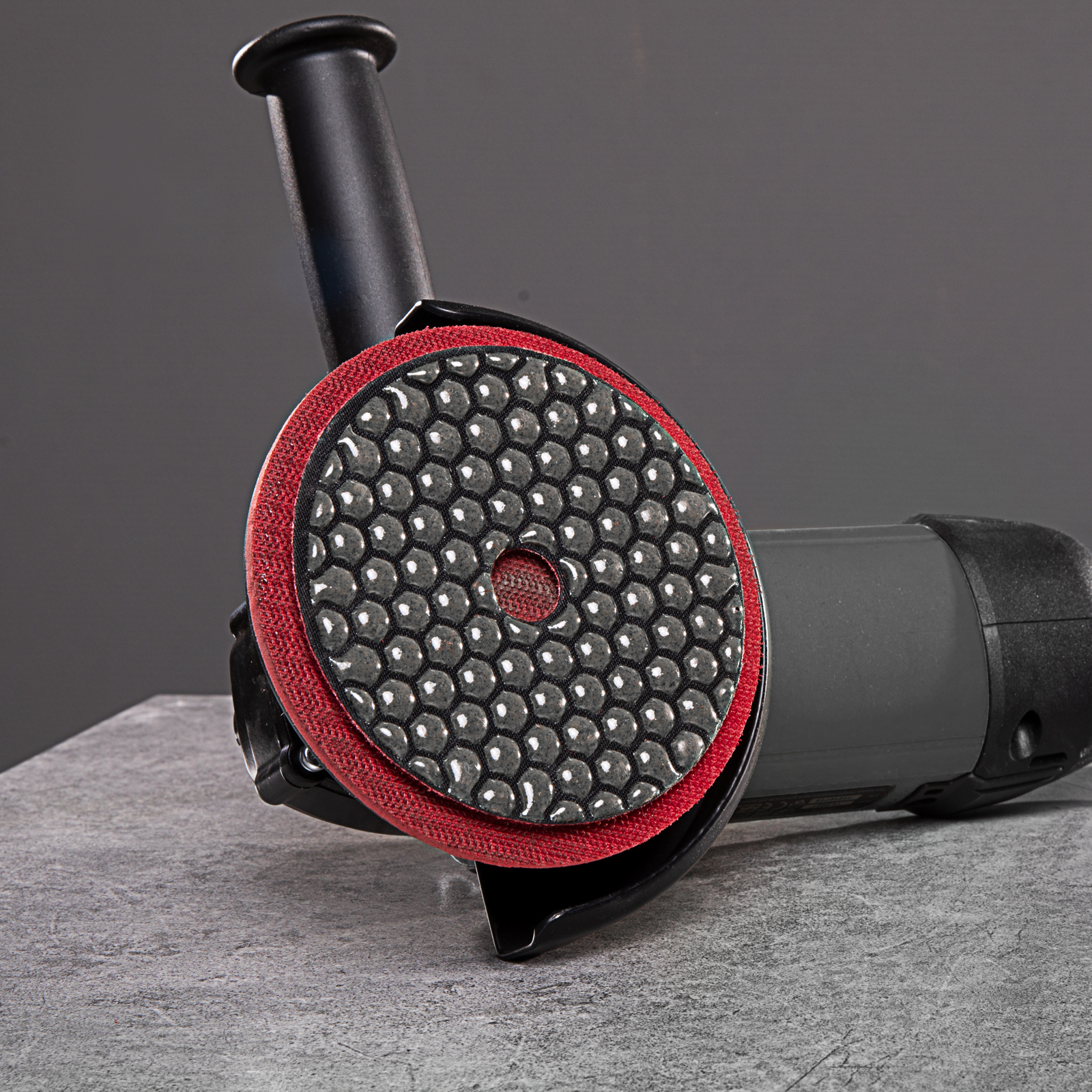 Алмазный гибкий шлифовальный круг Matrix 73501 диаметром 100 мм, с зернистостью P 100, 5 шт. в упаковке, предназначен для сухого шлифования преимущественно белых и цветных поверхностей из гранита, мрамора, природного и искусственного камня, керамогранита. Абразив с зернистостью P 100 снимает большой слой материала и используется для черновой шлифовки. Гибкий круг удобен для обработки предметов сложной формы. Оснастка используется на УШМ с установленной опорной тарелкой для АГШК. Преимущества Устойчивость к нагреву и износу — рабочая поверхность отличается высокой концентраций алмазов, а в качестве связки использован качественный термопластик. Шлифовка без охлаждающей жидкости — рабочая поверхность из круглых сегментов с промежутками между ними («черепашка») обеспечивает эффективный отвод шлама. Быстрая установка — система крепления velcro позволяет моментально закрепить круг на липучке опорной тарелки. Удобная комплектация — в упаковке 5 штук, которых хватит для выполнения большого объема работ.
