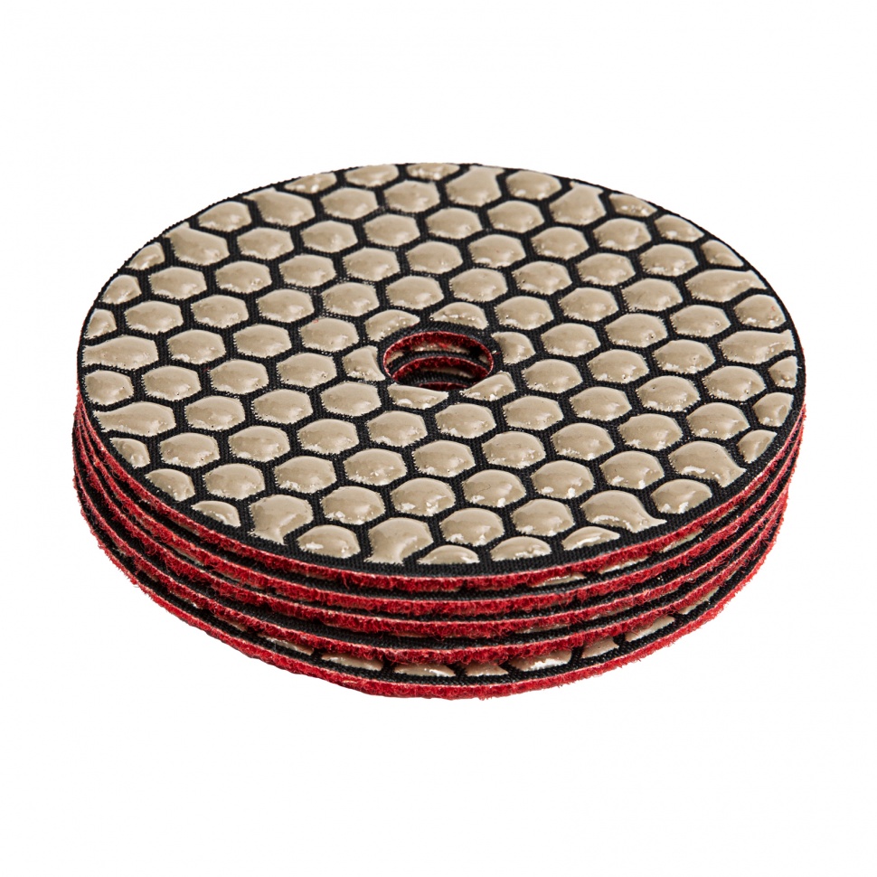 Алмазный гибкий шлифовальный круг Matrix 73506 диаметром 100 мм, с зернистостью P 3000, 5 шт. в упаковке, предназначен для сухого шлифования гранита, мрамора, природного и искусственного камня, керамогранита. Используется на поверхностях разного цвета, в том числе черных. Абразив с зернистостью P 3000 применяется для финишного полирования, позволяет добиться глянцевого блеска материалов. Гибкий круг удобен для обработки предметов сложной формы. Оснастка используется на УШМ с установленной опорной тарелкой для АГШК. Преимущества Устойчивость к нагреву и износу — рабочая поверхность отличается высокой концентраций алмазов, а в качестве связки использован качественный термопластик. Шлифовка без охлаждающей жидкости — рабочая поверхность из круглых сегментов с промежутками между ними («черепашка») обеспечивает эффективный отвод шлама. Быстрая установка — система крепления velcro позволяет моментально закрепить круг на липучке опорной тарелки. Удобная комплектация — в упаковке 5 штук, которых хватит для выполнения большого объема работ.