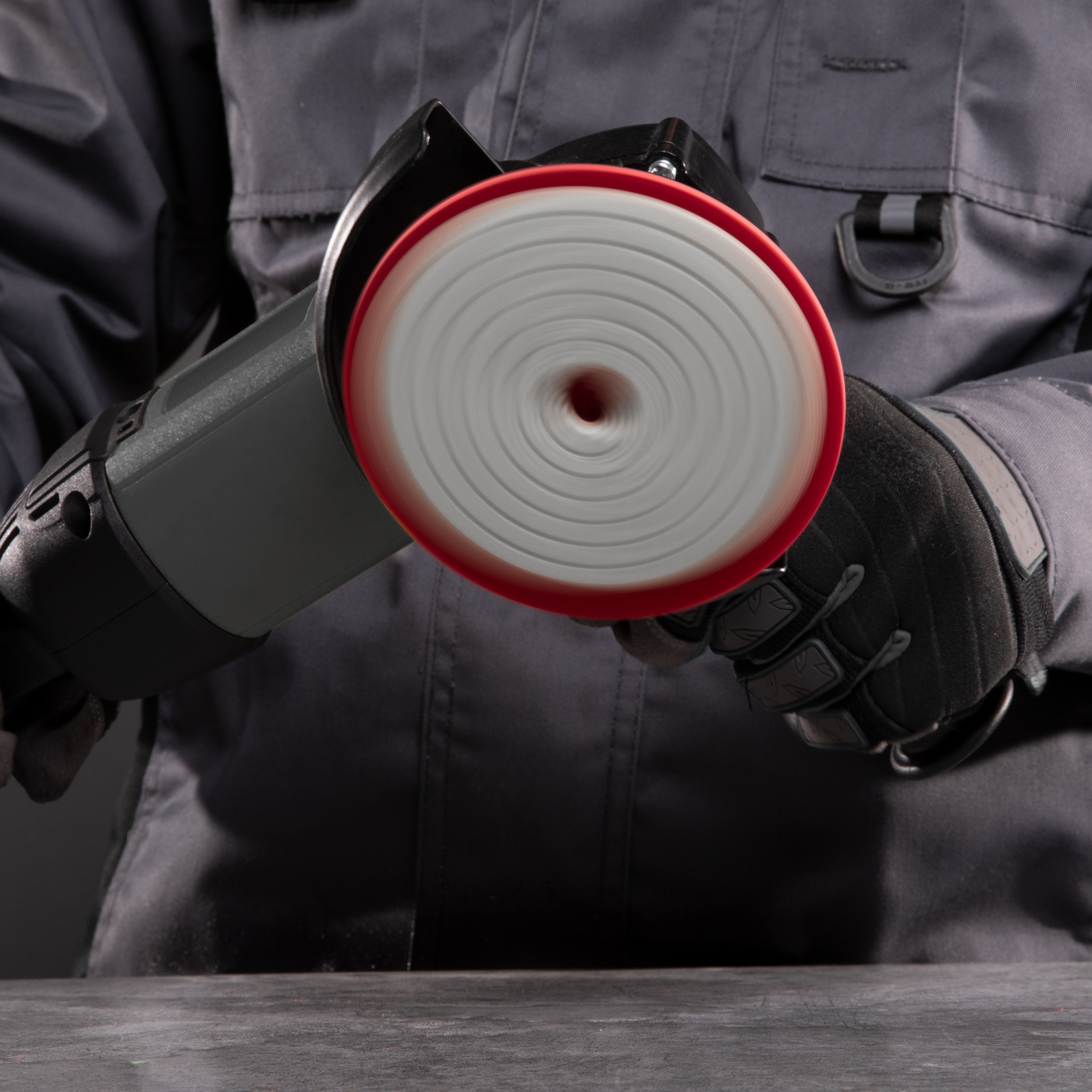 Алмазный гибкий шлифовальный круг Matrix 73512 диаметром 100 мм, с зернистостью P 1500, 5 шт. в упаковке, предназначен для мокрого шлифования и используется при проведении строительных, отделочных и художественных работ. Абразив зернистостью P 1500 позволяет проводить финишную обработку - полировать гранитные, каменные, керамогранитные и мраморные поверхности. Рабочая часть выполнена из белого термопластика с алмазным напылением и подходит для использования на цветных, преимущественно белых, материалах. Гибкая основа круга облегчает шлифовку рельефных элементов. Круг используется на УШМ с установленной опорной тарелкой для АГШК.ПреимуществаВысокий рабочий ресурс - в качестве абразива использованы алмазные частицы плотной концентрации, а связкой является устойчивый к трению и нагреву термопластик.Эффективное удаление шлама - на рабочей поверхности имеется большое количество бороздок, благодаря которым она не забивается продуктами шлифования.Быстрая фиксация и замена круга - крепление под липучку позволяет мгновенно закреплять его на опорной тарелке.Удобная комплектация - круги поставляются наборами по 5 штук, которых хватит надолго.