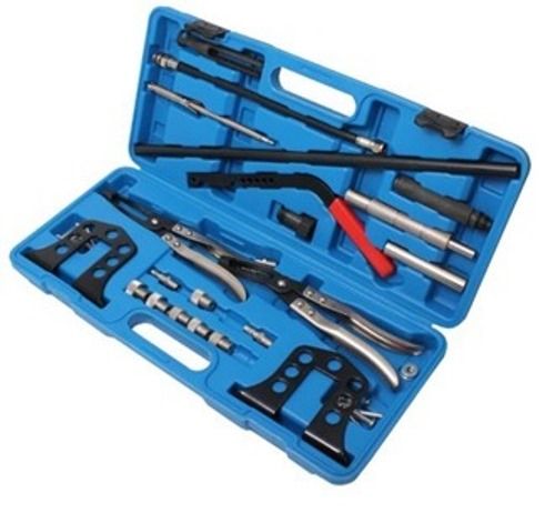 Рассухариватель клапанов RockForce сборный в комплекте со щипцами для маслосъемных колпачков, 26 предметов в наборе в кейсе используется для сжатия клапанных пружин. Инструмент можно задействовать как на снятой головке блока, так и на двигателе. Изделие универсально и подходит для большинства двигателей.