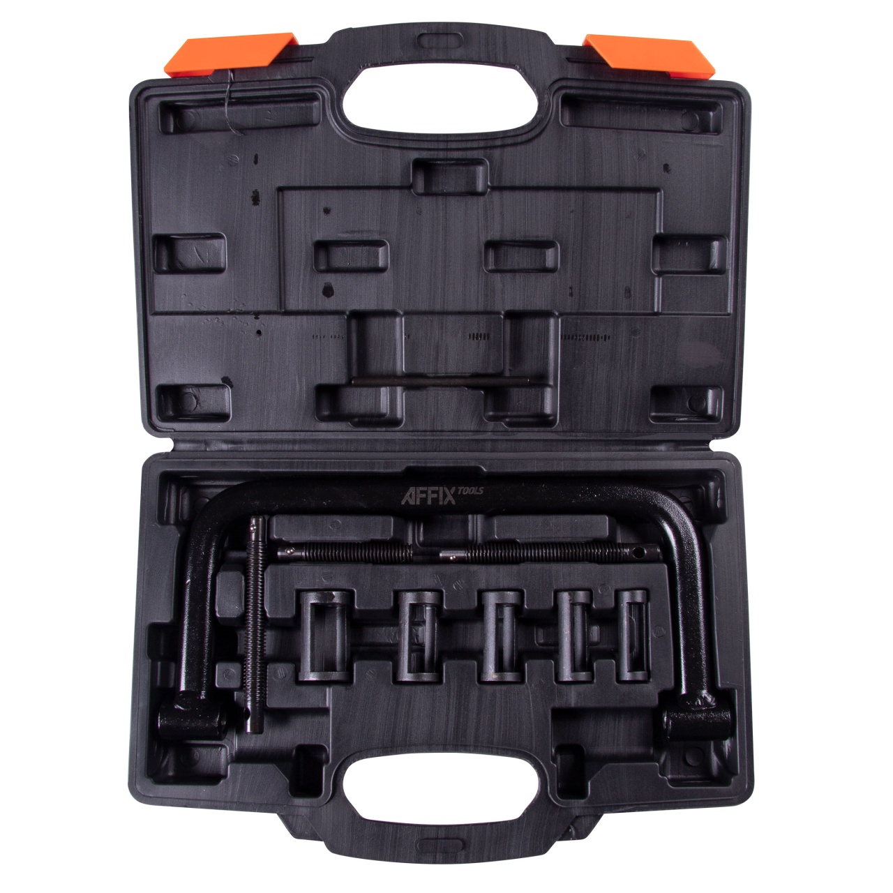 С обоих сторон струбцины соосно расположены винты – один для поддержки клапана, другой – для сжатия клапанной пружины посредством опорной втулки. Сжав пружину винтом или рычагом, освободившиеся «сухари» можно аккуратно снять или извлечь при помощи тонкого магнита.
