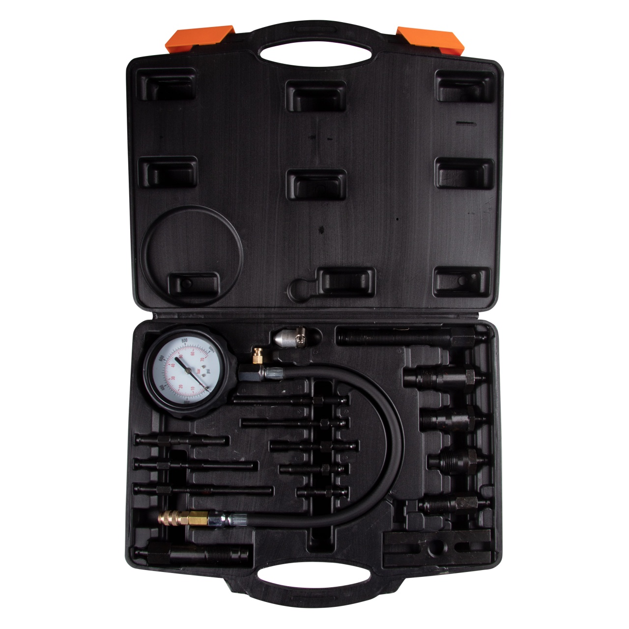 • Манометр 0-70 бар (1015 psi) с гибким 340 мм БРС шлангом