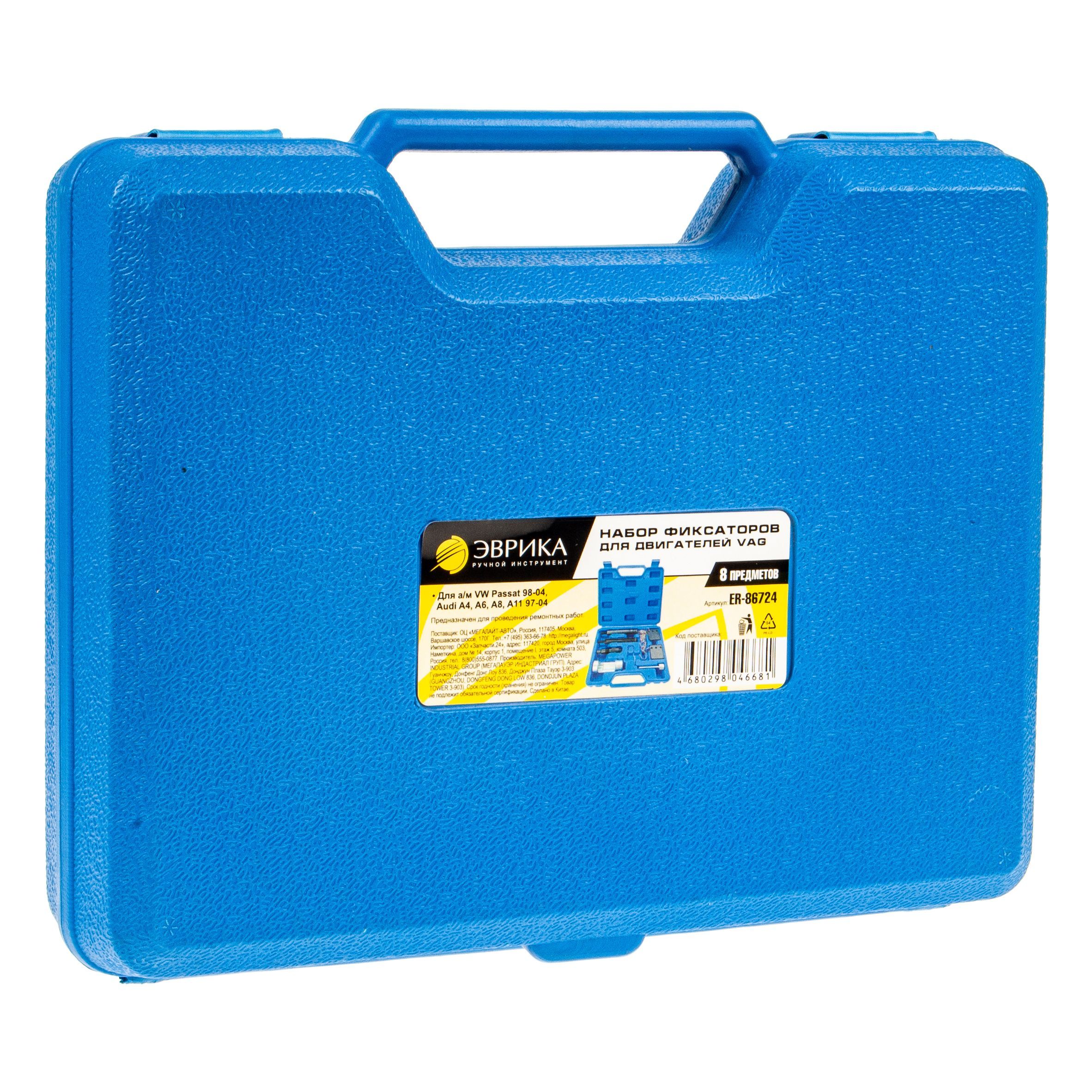 Набор фиксаторов для двигателей VAG(VW Passat 98-04, Audi A4, A6, A8, A11 97-04) 8прелметов в кейсе ЭВРИКА