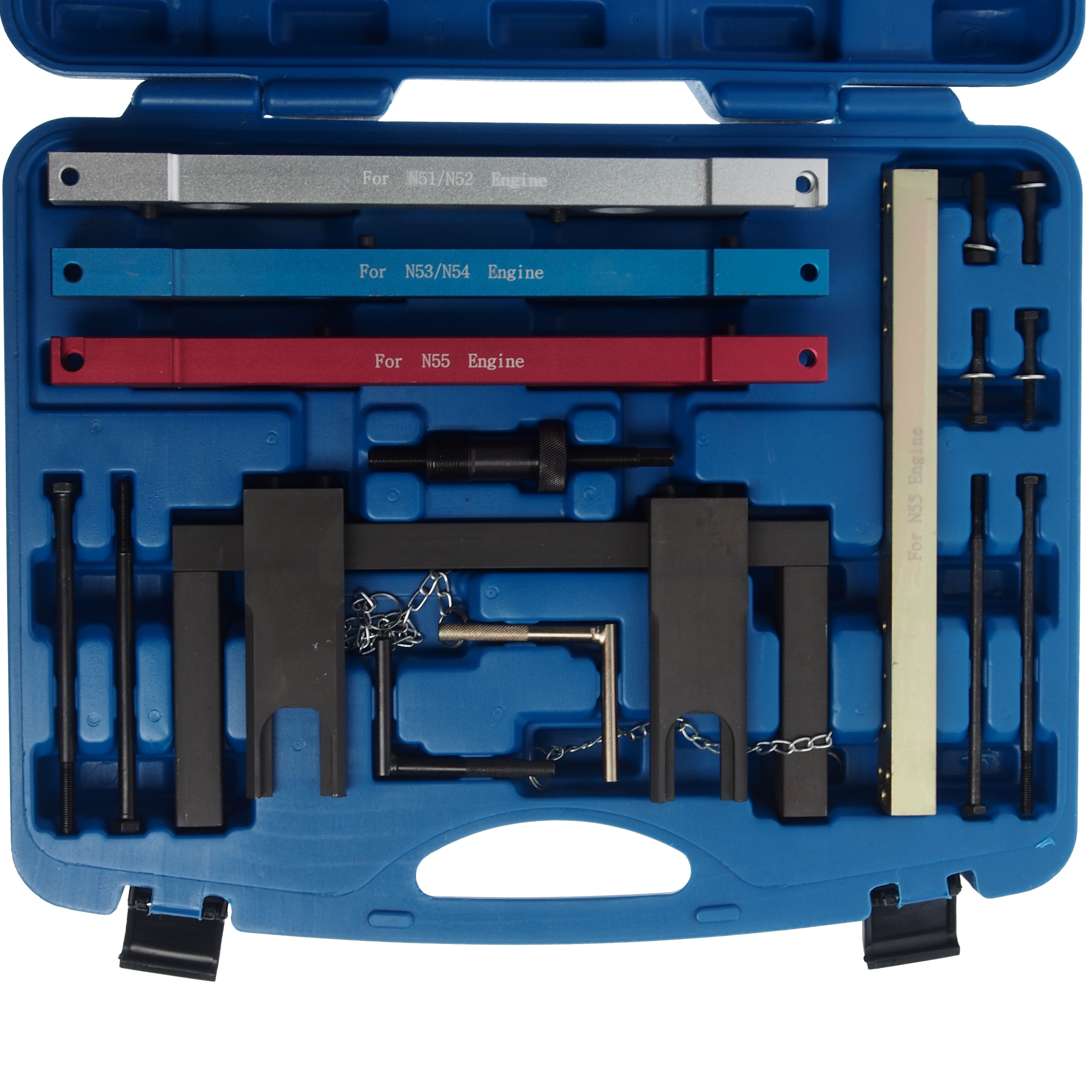 Набор фиксаторов для обслуживания двигателей RockForce 15 предметов в наборе, в кейсе Набор используется для профессионального монтажа или демонтажа необходимого элемента в автомобиле. Инструмент изготовлен из прочной стали и имеет удобную рукоятку, которая обеспечит эффективность даже при длительной эксплуатации. Комплект разработанных специально для работы с автомобилями марки BMW (N51 N52 N53 N54 N55)