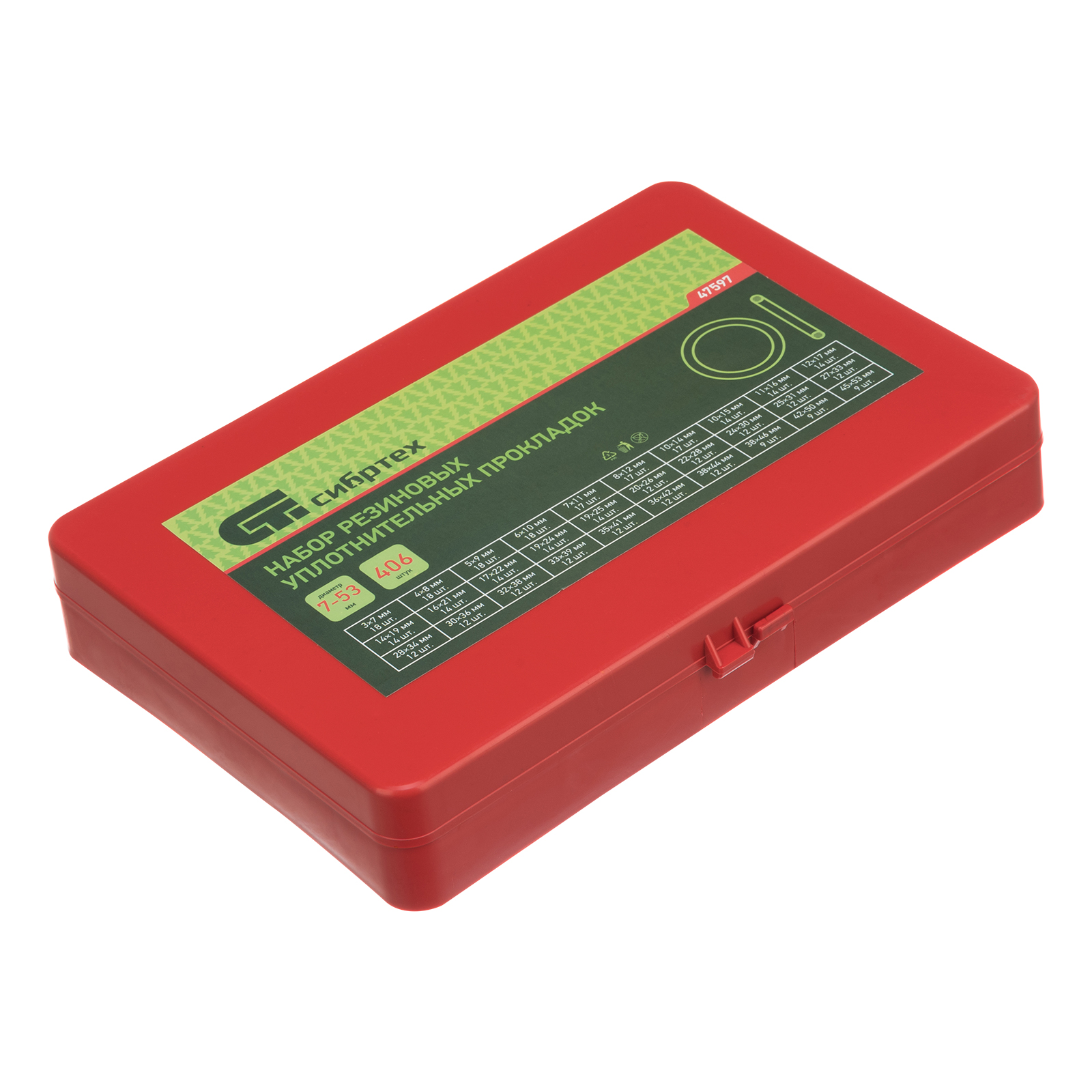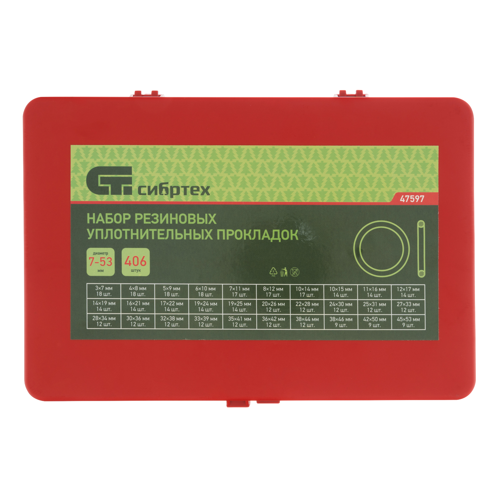Набор Сибртех 47597 состоит из 406 резиновых уплотнительных прокладок с наружным диаметром от 7 до 53 мм и используется для создания герметичных конструкций. Позволяет решать широкий спектр задач, т. к. включает кольца наиболее часто встречающихся размеров. Прокладки используют для сантехнических и других ремонтных работ, а также в качестве уплотнительных резинок для автомобиля.ПреимуществаИзносостойкость — кольца изготовлены из маслобензостойкой резины.Быстрый поиск нужной прокладки — уплотнительные кольца рассортированы по размерам.Удобное хранение и транспортировка — набор упакован в надежный пластиковый кейс.