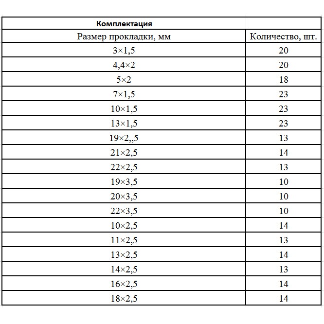Набор Сибртех 47598 состоит из 279 резиновых уплотнительных прокладок с наружным диаметром от 3 до 23 мм и используется для создания герметичных конструкций. Позволяет решать широкий спектр задач, т. к. включает кольца наиболее часто встречающихся размеров. Прокладки используют для сантехнических и других ремонтных работ, а также в качестве уплотнительных резинок для автомобиля.ПреимуществаИзносостойкость — кольца изготовлены из маслобензостойкой резины.Быстрый поиск нужной прокладки — уплотнительные кольца рассортированы по размерам.Удобное хранение и транспортировка — набор упакован в пластиковый кейс.