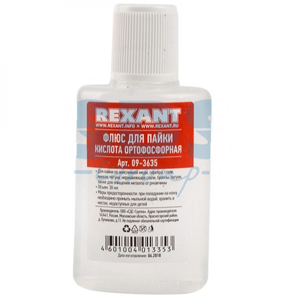 Флюс для пайки кислота ортофосфорная 30 мл REXANT предназначен для удаления оксидов с поверхности под пайку, улучшения растекания жидкого припоя при пайке по окисленной меди, по чёрному металлу или нержавеющей стали. Кроме того, часто используется для очистки от ржавчины металлических поверхностей, образуя на обработанной поверхности защитную плёнку, предотвращая дальнейшую коррозию.