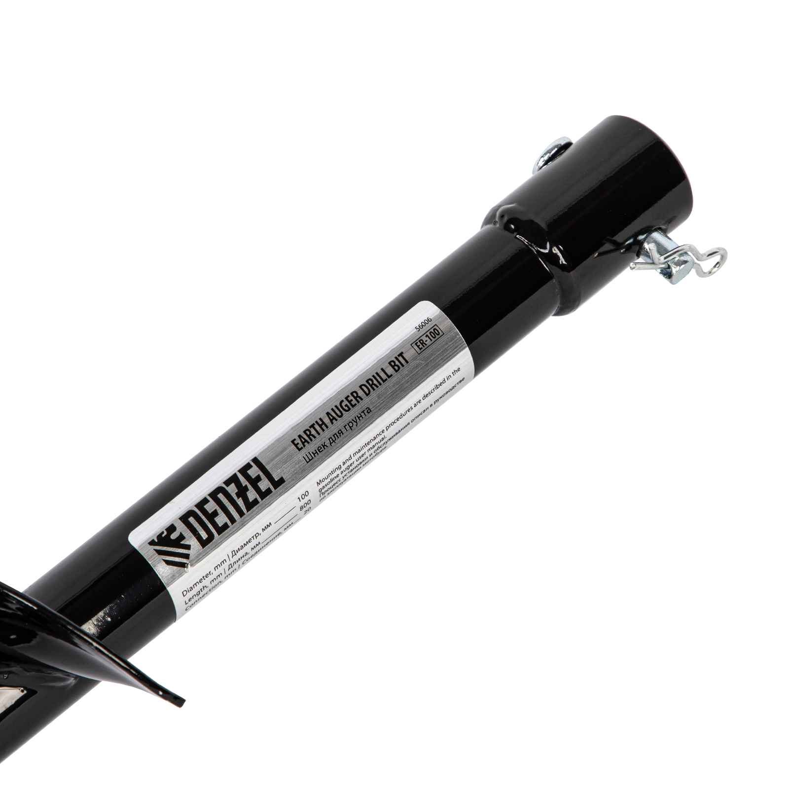 Шнек для грунта Denzel ER-100 56006 длиной 800 мм с диаметром соединения 20 мм, со съемным ножом, устанавливается на мотобур и используется для бурения отверстий диаметром 100 мм. Инструмент пригодится для установки столбчатых опор, формирования лунок для посадки растений и бурения отверстий в грунте различной плотности при выполнении других задач.ПреимуществаНадежность — шнек из легированной стали 34CR4 устойчив к деформации.Долговечность — стойкое защитное покрытие предохраняет изделие от образования коррозии.Эффективная работа — усиленный забурник упрощает центрирование шнека, рабочая кромка с прецизионной заточкой легко разрезает грунт.Съемный нож — в случае поломки или износа режущий элемент можно заменить, избежав покупки нового шнека (совместимый артикул 56015).