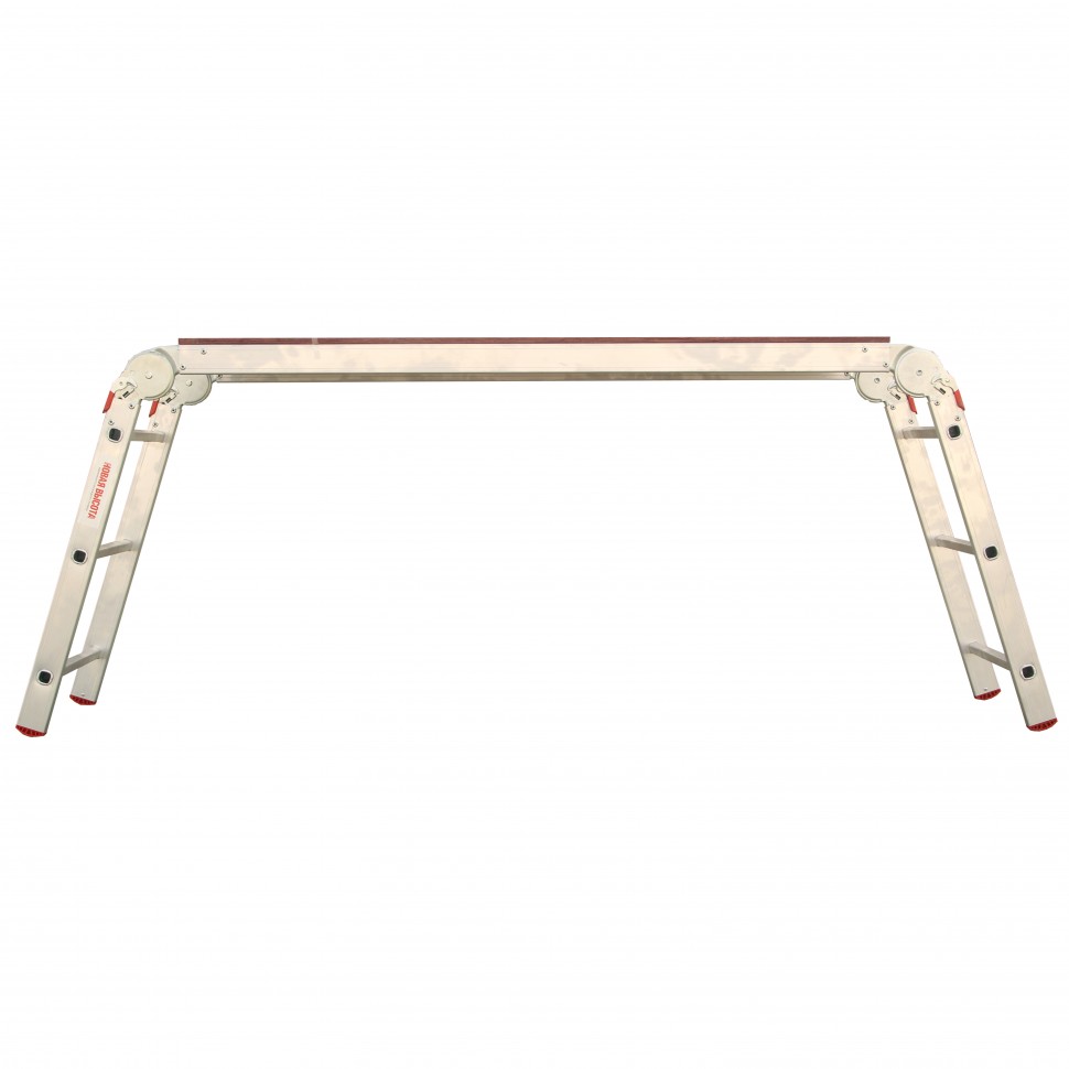 Рабочие подмости 97962, количество ступеней 3 х 6 х 3, используют для размещения инструментов и материалов, а также для работы на высоте. Рассчитаны на нагрузку до 150 кг, используются во время строительства и ремонта.ПреимуществаНадежность — стойки и ступени изготовлены из прессованного алюминиевого профиля, рабочая площадка из антисептированной фанеры устойчива к воздействию микроорганизмов и насекомых.Увеличенная прочность — стойки усилены в местах наибольшей нагрузки, многократная развальцовка обеспечивает надежное соединение ступеней со стойками.Простая установка — подмости быстро устанавливаются и складываются, шарнирные замки легко регулируются и автоматически фиксируются.Безопасность — ступени имеют антискользящую рифленую поверхность, а благодаря пластиковым накладкам на стойках подмости не скользят во время работы.Удобное хранение и транспортировка — габариты в сложенном состоянии составляют 1,72 х 4,62 х 1,4 м.