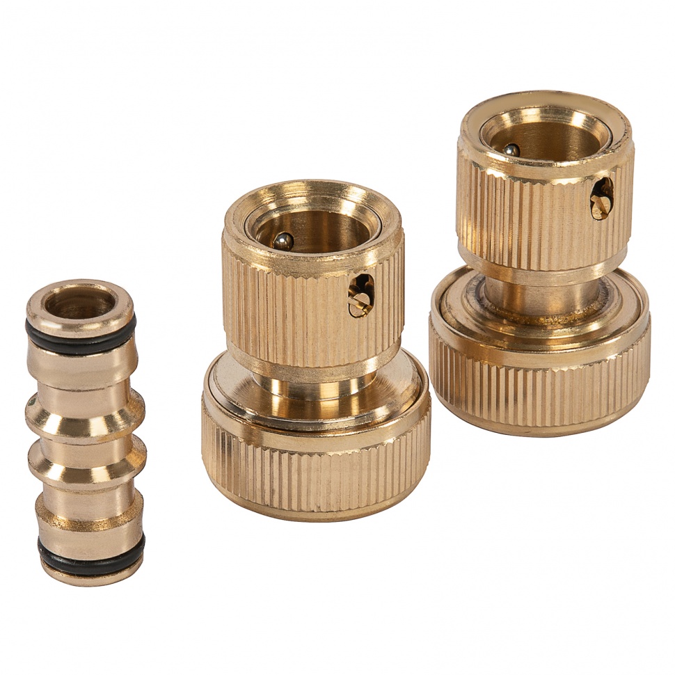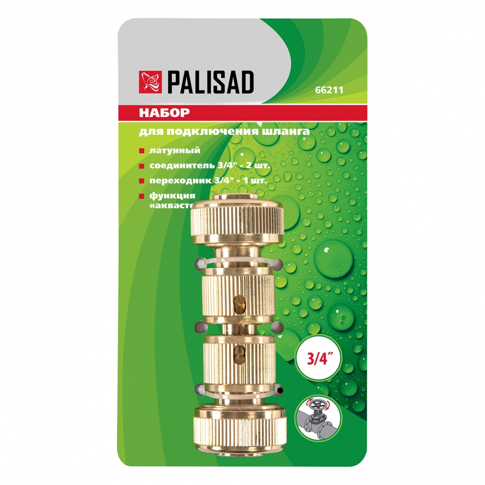 Латунный набор Palisad 66211 предназначен для шлангов диаметром 3/4 дюйма и включает переходник и 2 соединителя, в том числе оснащенный клапаном «аквастоп». Позволяет нарастить шланг и присоединить его к поливочной линии. Используется для монтажа системы орошения на приусадебном участке.ПреимуществаВсе элементы набора изготовлены из латуни, поэтому обладают высокой прочностью, коррозионной стойкостью и обеспечивают долговечные соединения.Клапан «аквастоп» прекращает подачу воды при отсоединении нарощенного шланга, поэтому закрывать кран не требуется.Переходник и коннекторы имеют стандартные размеры и совместимы с тройниками, быстросъемными соединителями и другими элементами всех поливочных систем Palisad.
