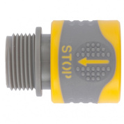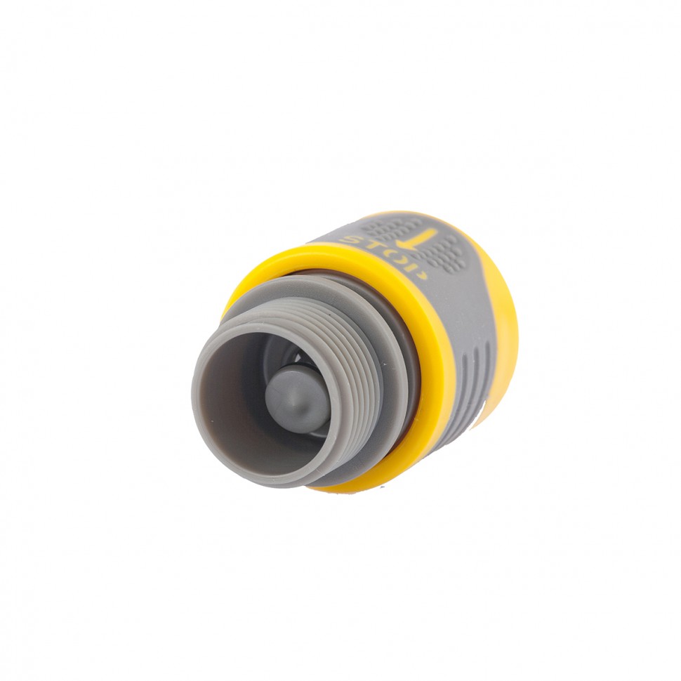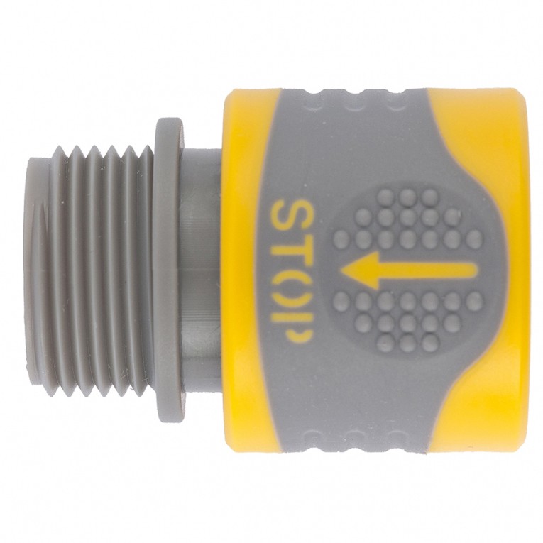 Быстросъемный соединитель Palisad LUXE 66233 с клапаном «аквастоп» и наружной резьбой 3/4" предназначен для подключения шланга к напорной магистрали. Пригодится садоводам для организации полноценной поливочной системы и орошения участка.ПреимуществаНадежность и долговечность — коннектор выполнен из ABS-пластика и термопластичной резины.Быстрое переключение между водоразборными линиями — при отключении шланга подача воды прекращается автоматически.Простая подготовка к работе — коннектор с быстросъемным соединением подключается без дополнительного инструмента.Удобная упаковка — соединитель поставляется с подвесной картой для размещения на стенде.