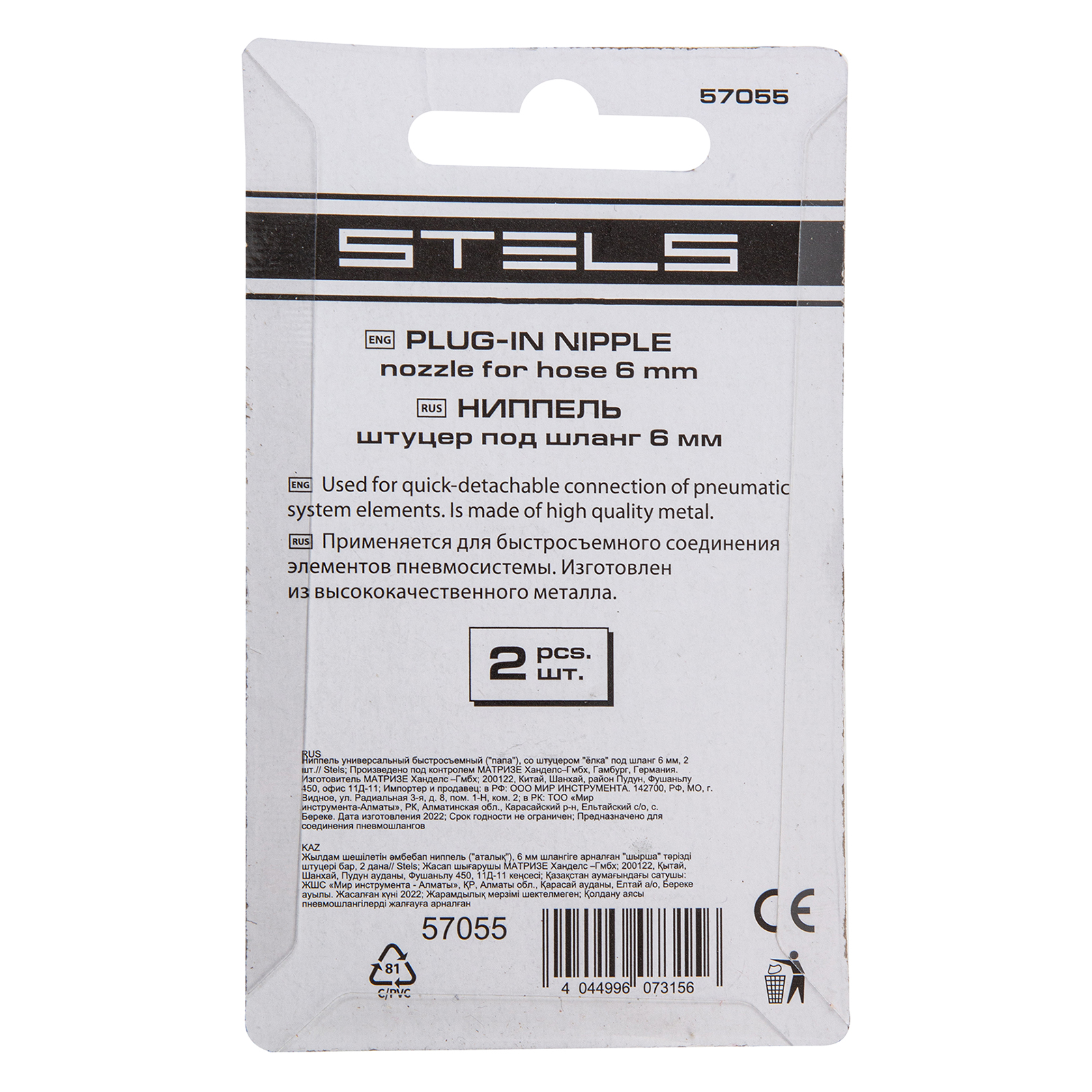 Универсальный быстросъемный ниппель Stels 57055 служит переходником для подключения пневмоинструмента к магистрали сжатого воздуха. Соединение осуществляется быстро и не требует от пользователя усилий.Преимущества:Ниппель обеспечивает герметичную стыковку элементов пневмомагистрали, что защищает от потери производительности.Стальная конструкция рассчитана на долгую службу.Никелевое покрытие надежно защищает ниппель от коррозии.В комплект поставки входит 2 ниппеля.