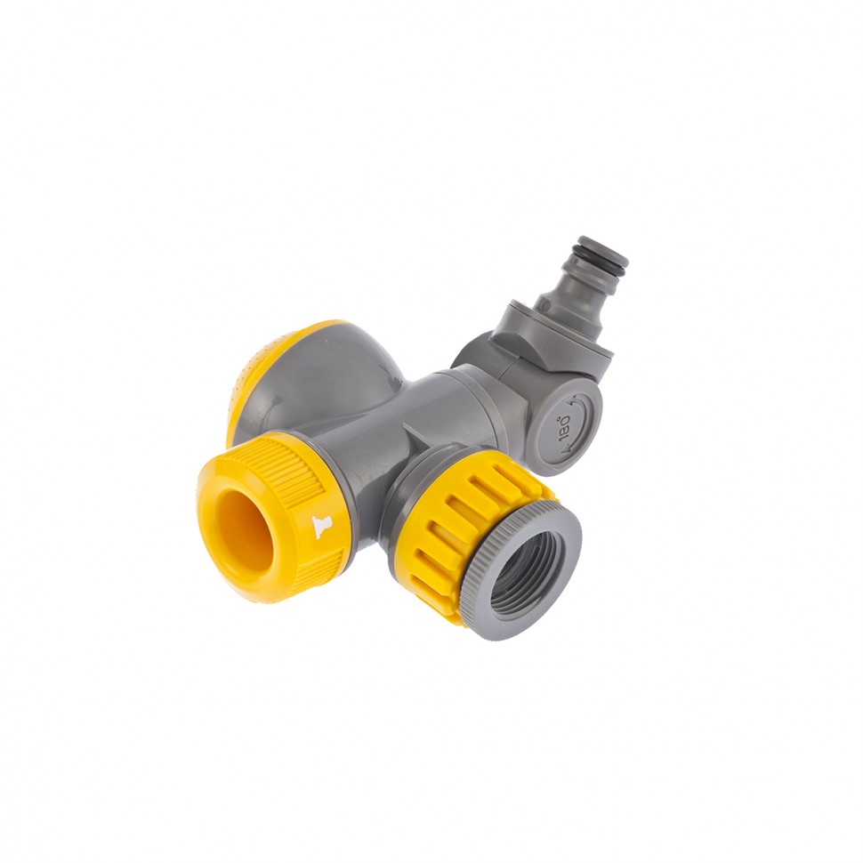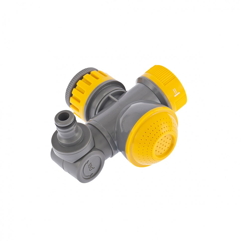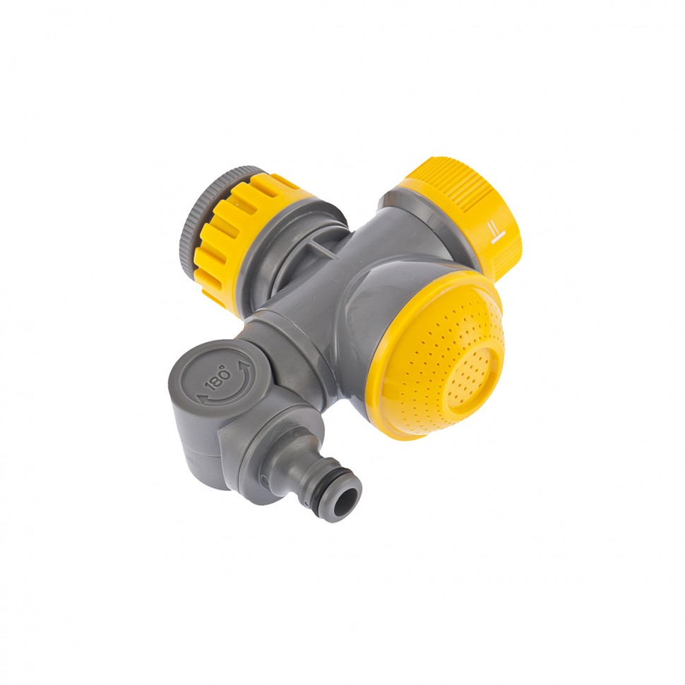 Соединитель Palisad LUXE 66253, с переключателем и шарниром, подключается к крану или отводу с внешней резьбой 1/2-3/4". Подходит для водоразборных точек, расположенных на высоте. Пригодится дачникам для создания поливочной системы или установки душа на участке.ПреимуществаНадежность — соединитель выполнен из прочного ABS-пластика.Удобная эксплуатация — благодаря распыляющей насадке доступ к крану сохраняется даже при подключенном шланге.Функциональность — специальный переключатель позволяет менять режимы работы («центральный», «душ», «шланг»), а также полностью останавливать подачу воды.Защита от деформации шланга — при помощи шарнира можно регулировать положение коннектора в пределах 180°.