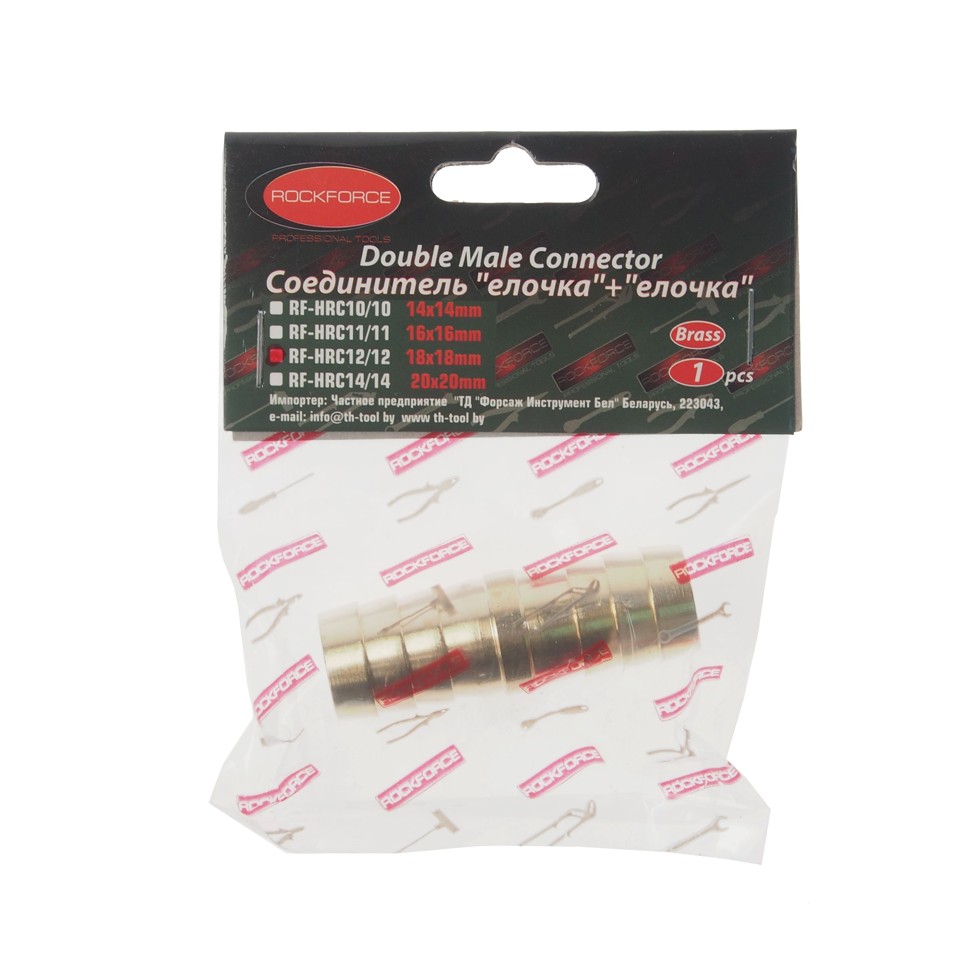 Соединитель RockForce "елочка"+"елочка" 18мм x 18мм соединяет два шланга между собой, увеличивая площадь полива. Переходник изготовлен из латуни. Адаптер прочно фиксирует шланги, исключая протекание.