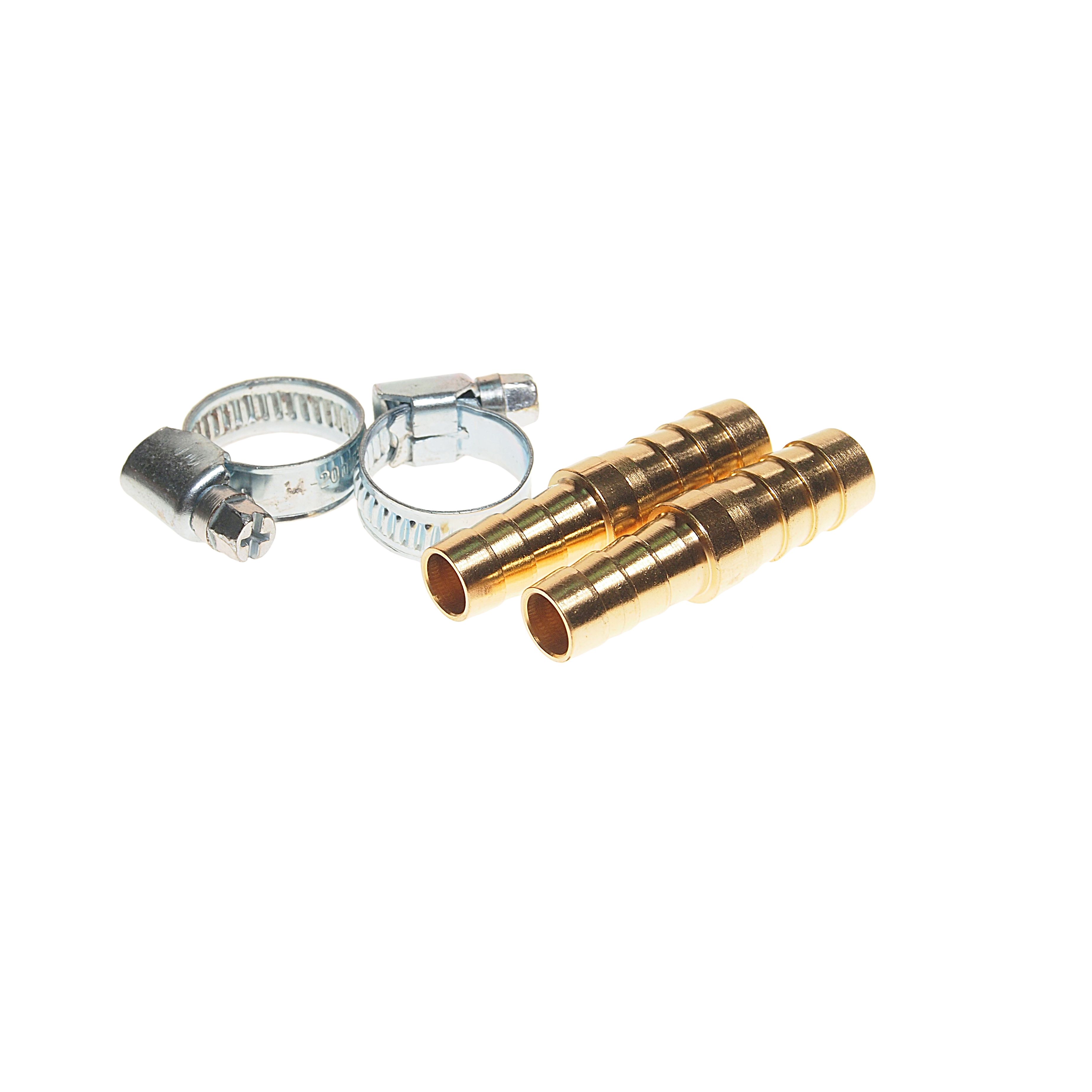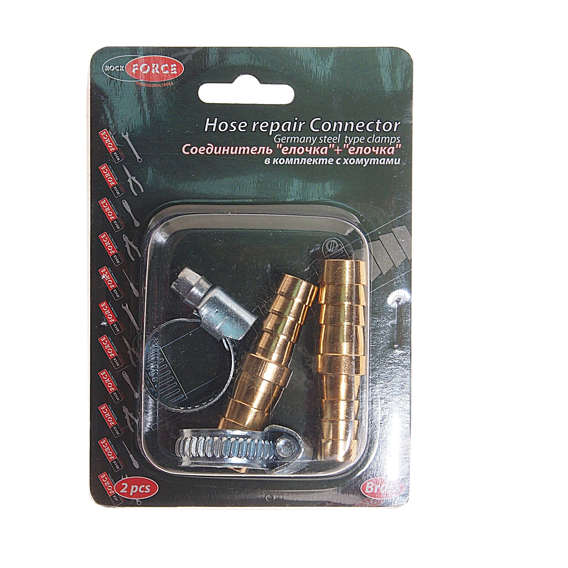 Соединитель RockForce "елочка"+"елочка" 12мм x 10мм (2 шт. + хомуты) соединяет два шланга между собой, увеличивая площадь полива. Переходник изготовлен из латуни. Адаптер прочно фиксирует шланги, исключая протекание.
