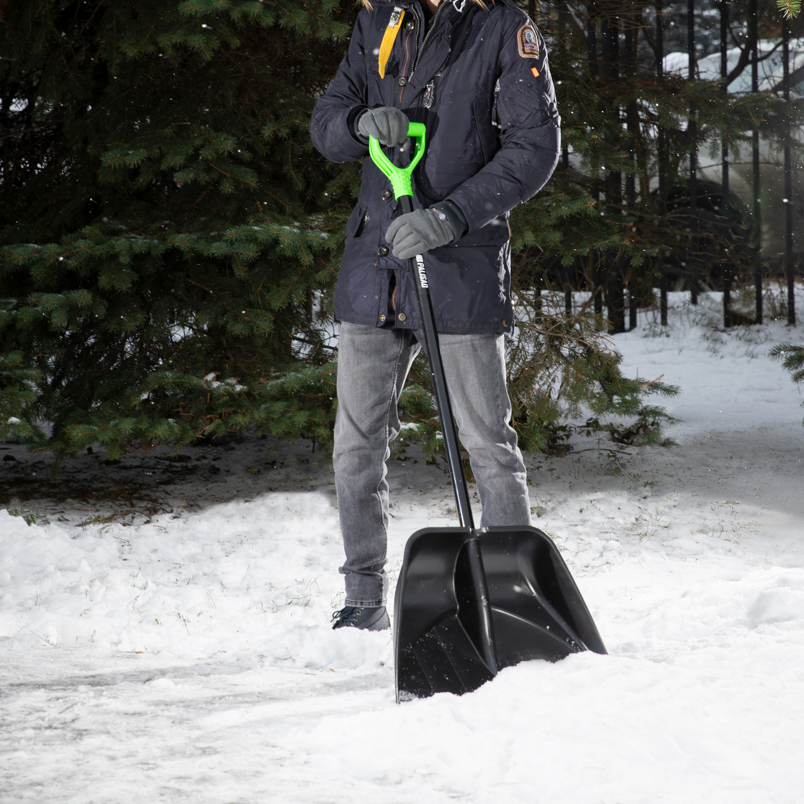 Пластиковая лопата для уборки снега Palisad PROFI 61607 с алюминиевым черенком, 550 х 415 х 1405 мм, используется для расчистки территории в зимний период. Благодаря алюминиевой накладке на кромке ковша инструмент эффективно справляется даже с плотным слежавшимся снегом и настом. Лопата весит всего 1,24 кг, поэтому с ней легко работать людям с разным уровнем подготовки. Инструмент пригодится при уборке придомовой территории, пространства перед гаражом или садового участка.ПреимуществаКовш из прочного полипропилена не разрушается под действием низких температур, поэтому прослужит долго.Алюминиевый черенок с покрытием из порошковой эмали устойчив к коррозии и механическим повреждениям.Глубокий ковш с ребрами жесткости позволяет переносить большое количество снега без риска поломки.Черенок оснащен дополнительной рукояткой, благодаря чему не скользит в руке даже при длительной работе.
