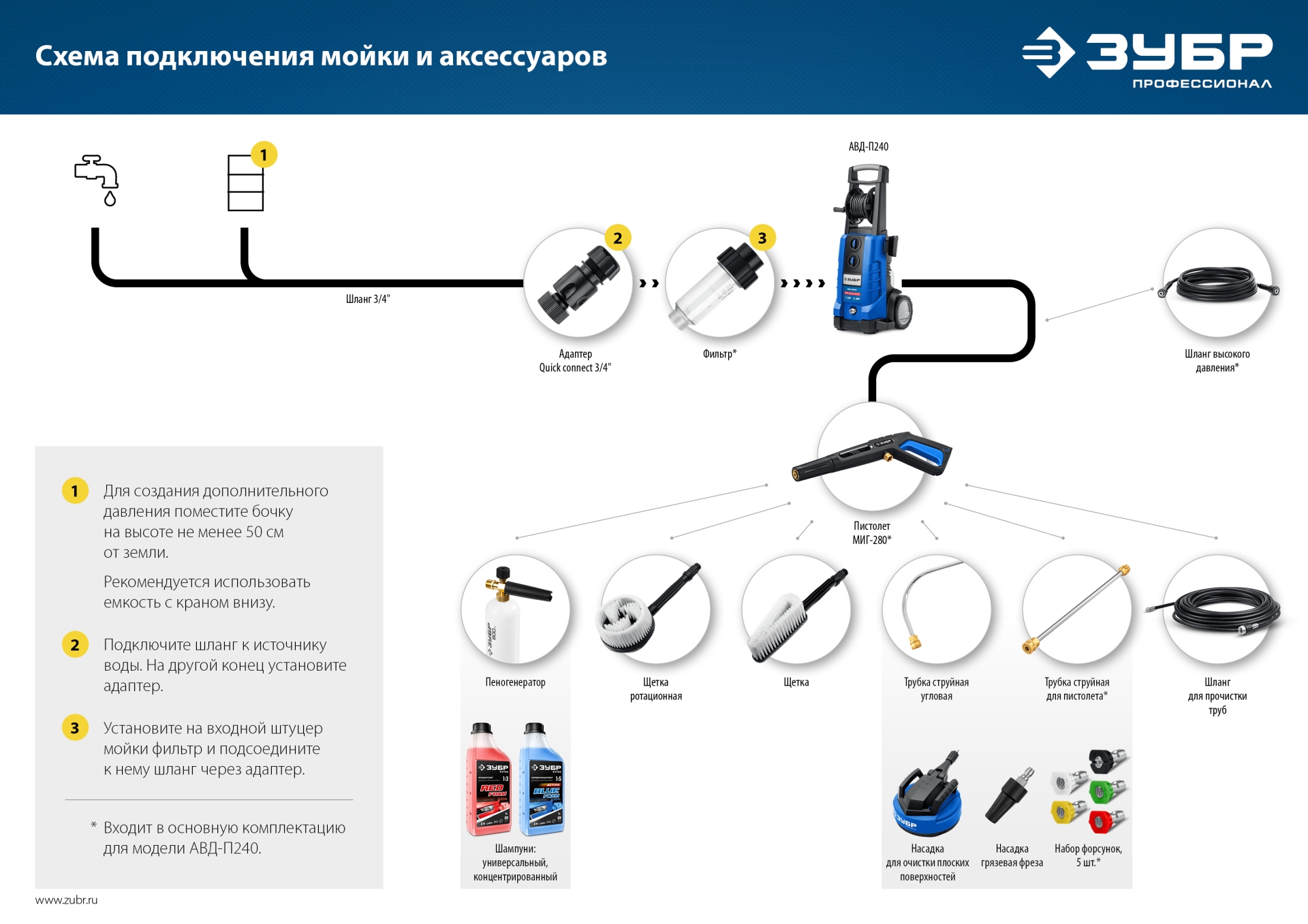 Качественные комплектующие для расширения функциональности моек ЗУБР