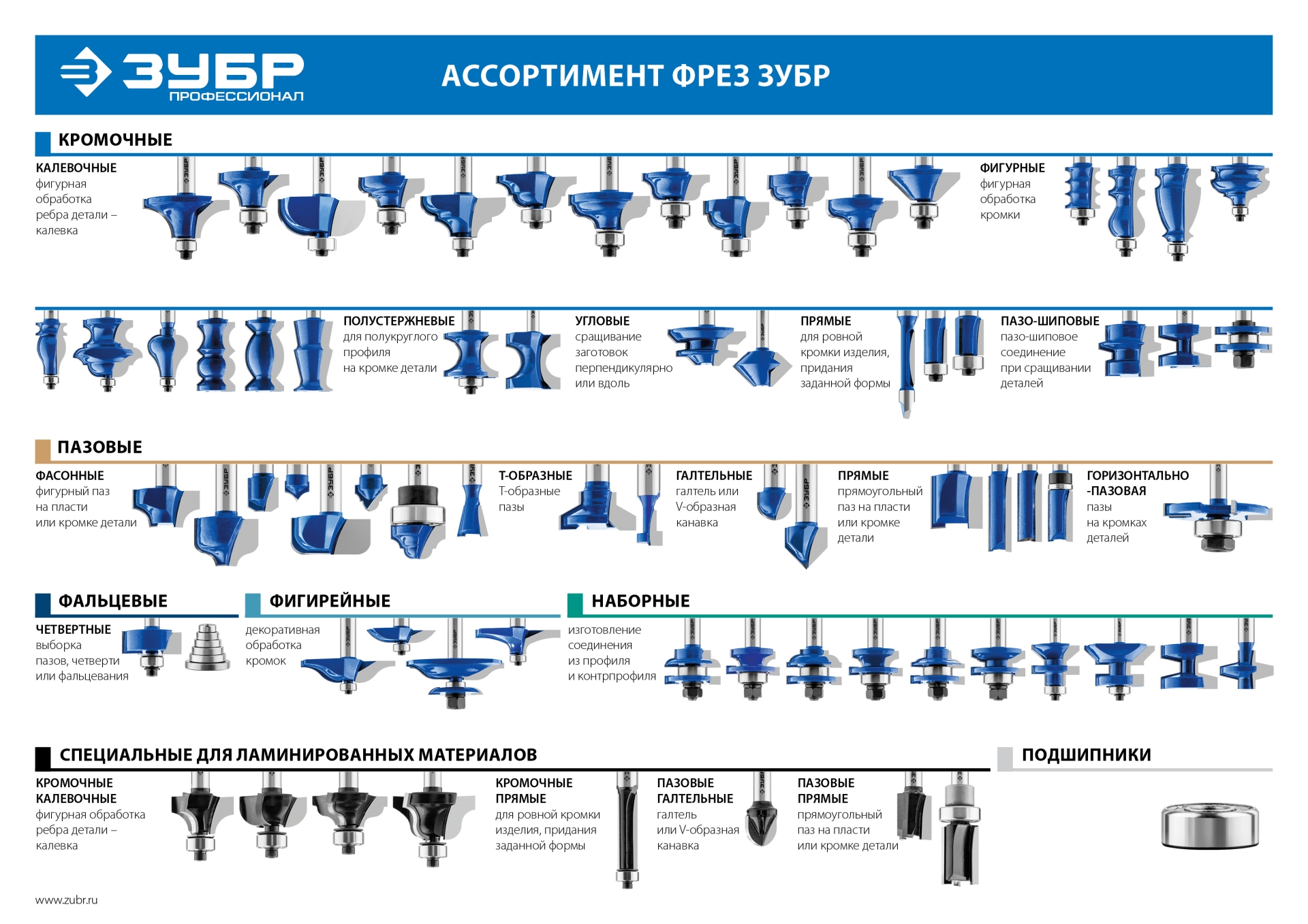 Возможно использование отдельных частей фрезы для получения необходимого профиля. Используется на фрезерных станках и ручных фрезерах при обработке мебели, столярных изделий, предметов интерьера, а также реставрационных работах и внутренней отделке.