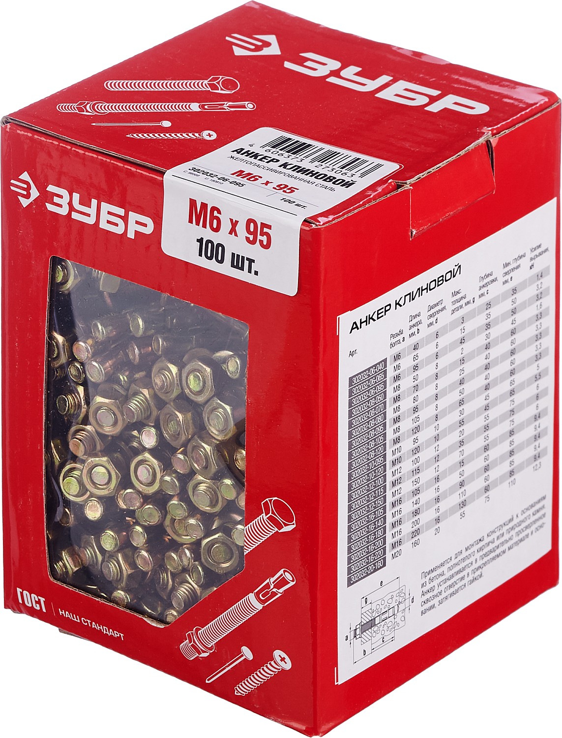 ЗУБР М6 х 95 мм, 100 шт, клиновой анкер (302032-06-095)